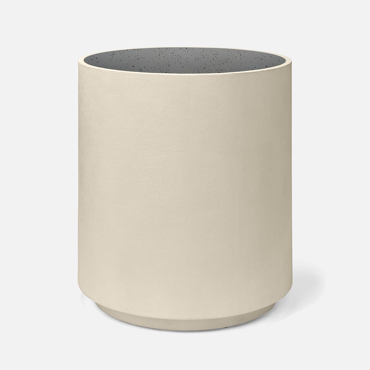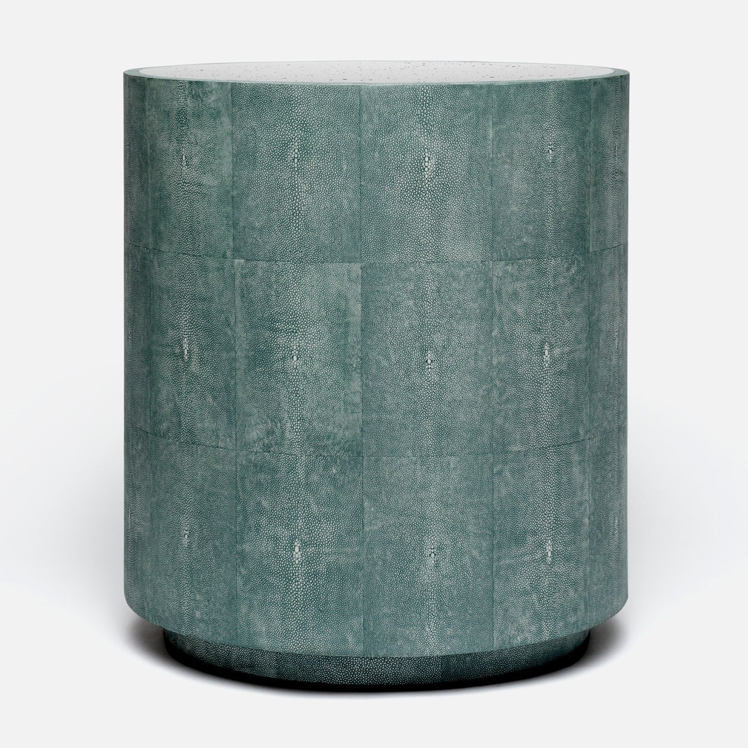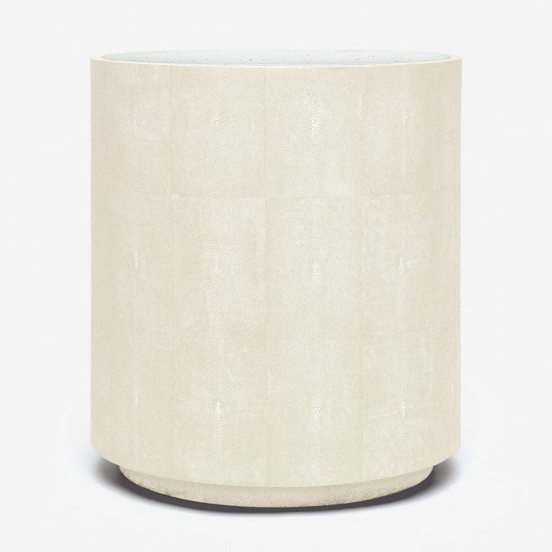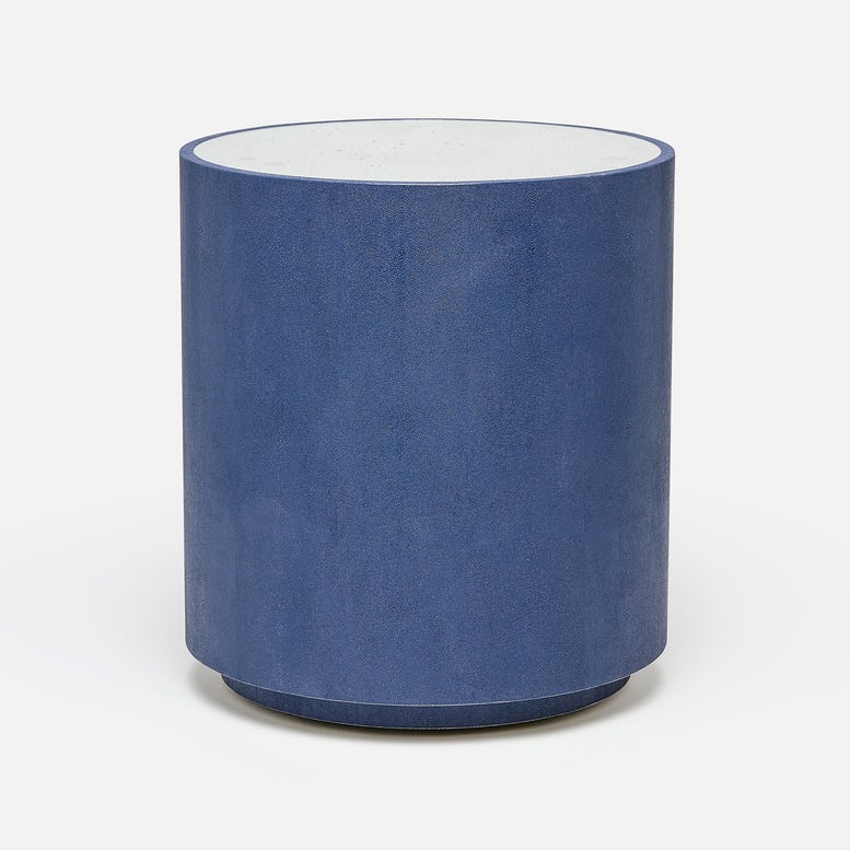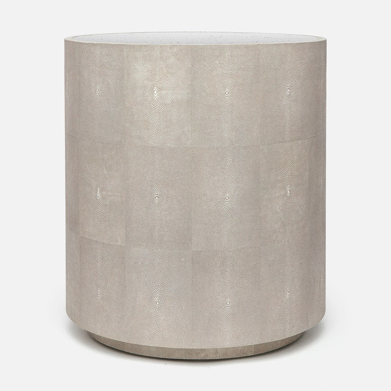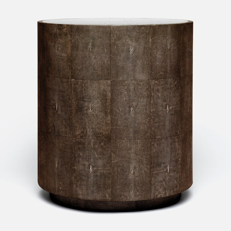 Made Goods Cara Round Faux Shagreen Drum Side Table with Antiqued Mirrored Top