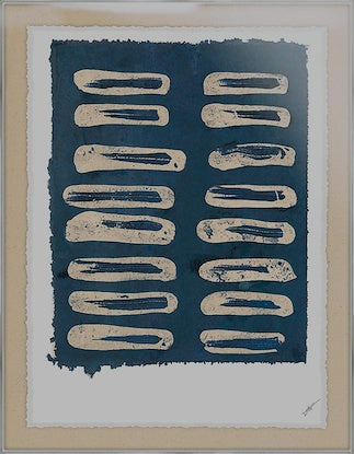 This stunning Indigo Relief Artwork, featuring a textured substrate on canvas, is a bold and modern piece that captivates with its deep, rich hues. Finished with an Image Brush Gel, the artwork exudes depth and dimension, while the sleek plexiglass frame enhances its contemporary appeal. Measuring 30"x40", it is perfect for adding a touch of artful sophistication to any room, creating a focal point that draws attention and admiration.