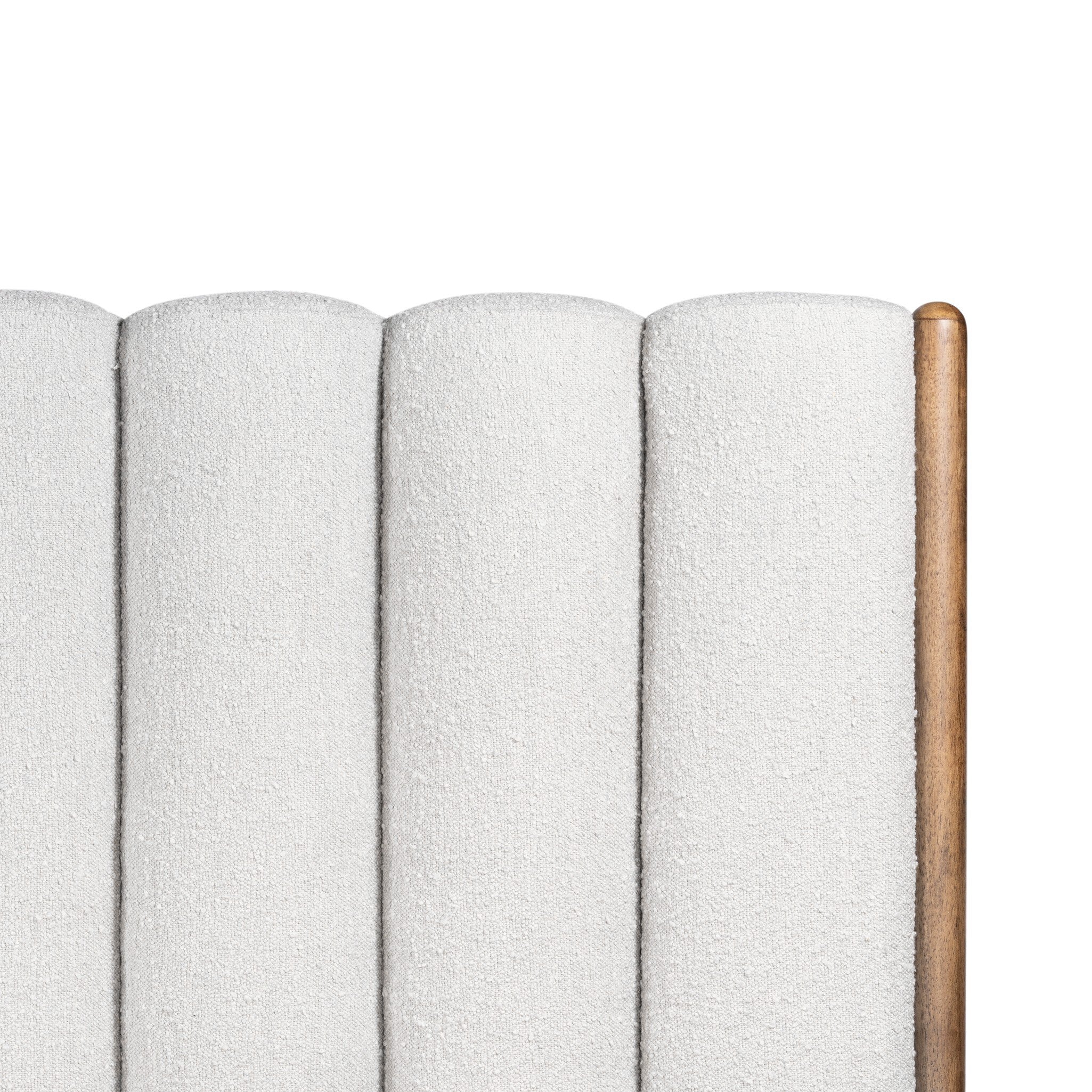 Channel Tufted King Bed – Knoll Sand Performance Bouclé Upholstered Bed with Parawood Frame