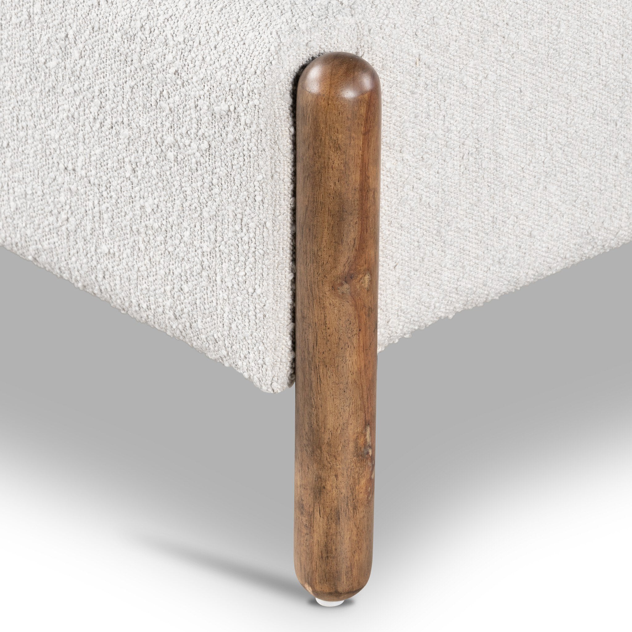 Framed by solid parawood legs that extend the full height of the headboard, the design creates a striking balance of warmth and structure. The neutral Knoll Sand upholstery offers a refined, versatile palette while maintaining durability for everyday living.