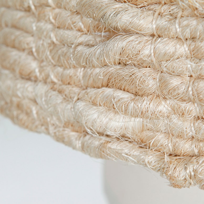 Woven strands of abaca: Meticulously crafted from woven strands of abaca. Each woven strand of abaca is carefully intertwined to create a unique pattern, emphasizing the lamp's handmade nature and ensuring that no two shades are alike.