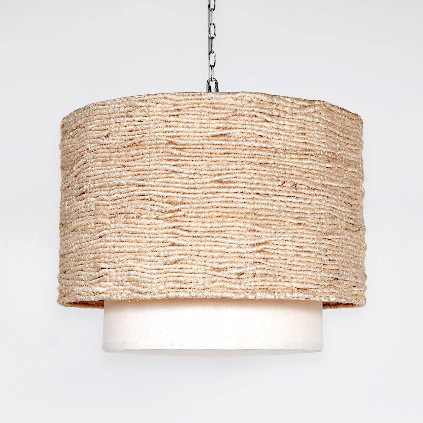 🕯️ Description: Illuminate your home with style and embrace the beauty of this exquisite woven drum shade. Introducing the Amani Drum, a strikingly elegant lighting fixture that effortlessly combines modern style with organic appeal. This product features a large drum shade, meticulously crafted from natural woven strands of abaca, resulting in a beautifully textured surface and a soft, inviting glow. The white finish adds a touch of contemporary sophistication, making it versatile enough to complement any interior decor.