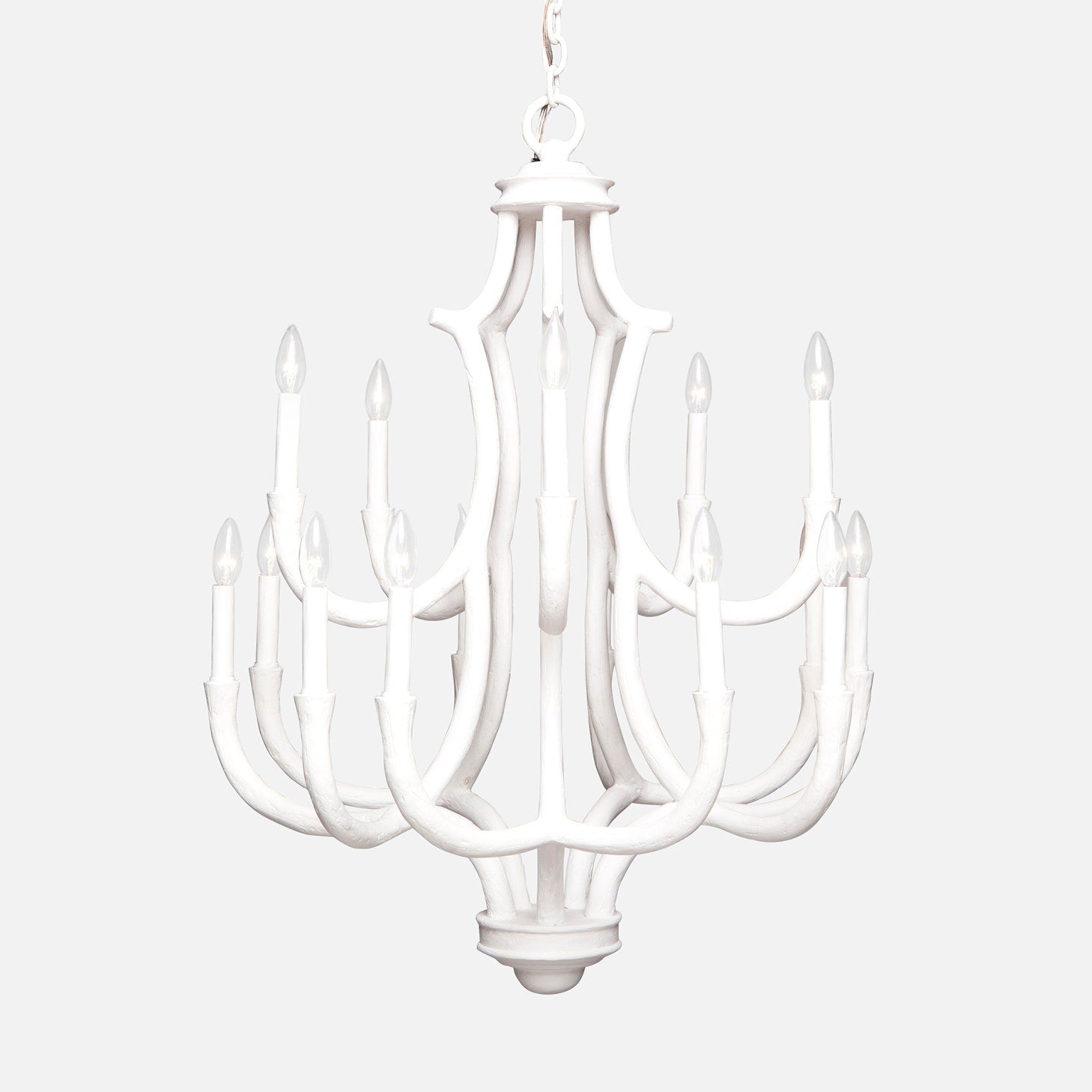 - Gesso Finish: The chandelier's gesso finish, reminiscent of traditional art primers, introduces a textured and nuanced quality, while the antler-like curves contribute a unique and organic aesthetic.