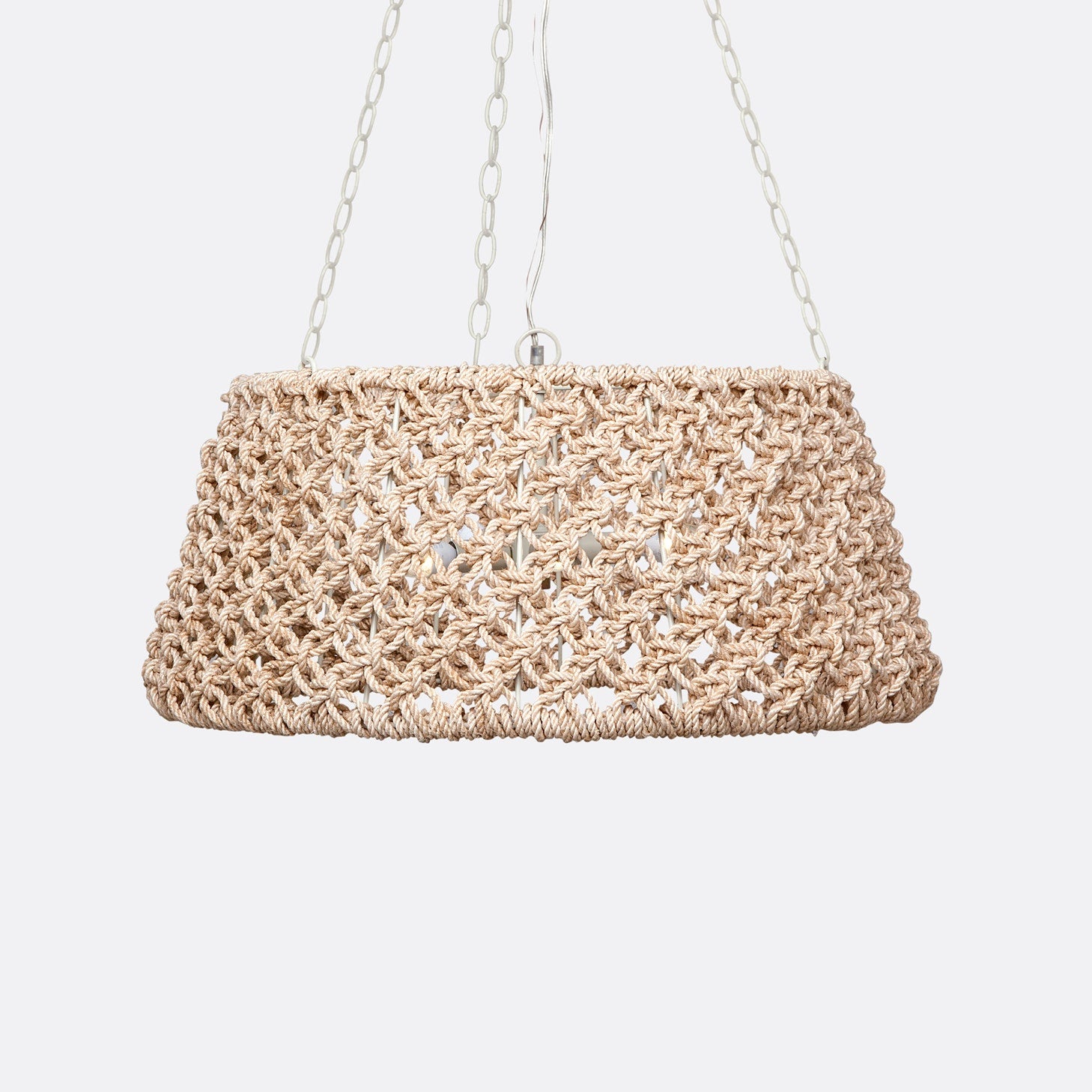- All-Natural Abaca Rope: The chandelier is crafted using all-natural abaca rope, providing a unique and texturally patterned design that adds a touch of natural elegance to any space.
