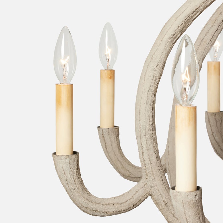 - Gray Concrete: This finish provides a more industrial and urban feel. The use of gray concrete suggests a raw and natural appearance, adding a touch of rugged elegance to the chandelier. Gray is a neutral and versatile color that can complement a range of design styles, from modern to industrial and beyond.