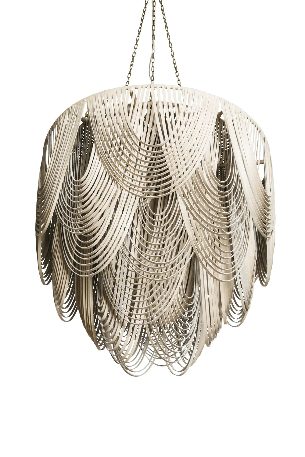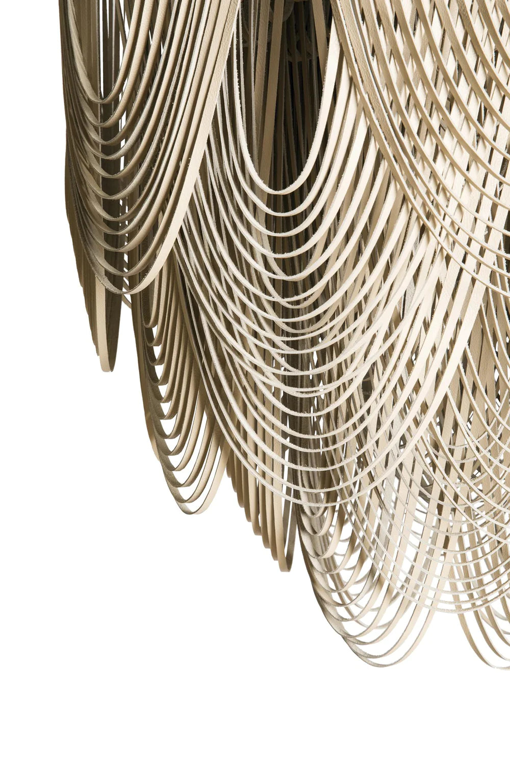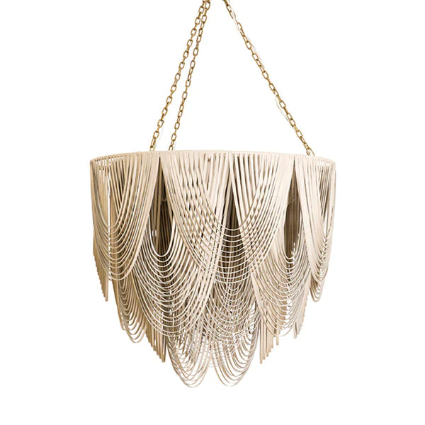 - Handcrafted with layered swags of tanned bovine leather for a graceful, organic look