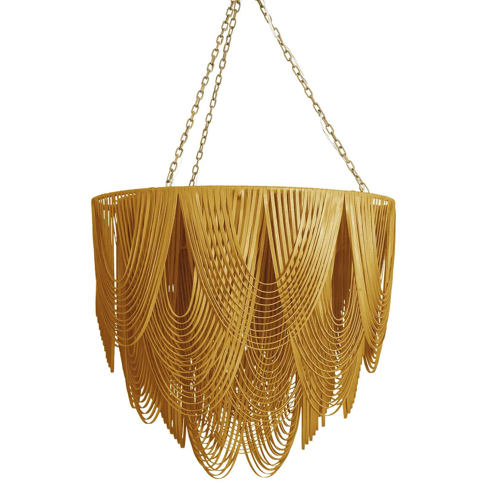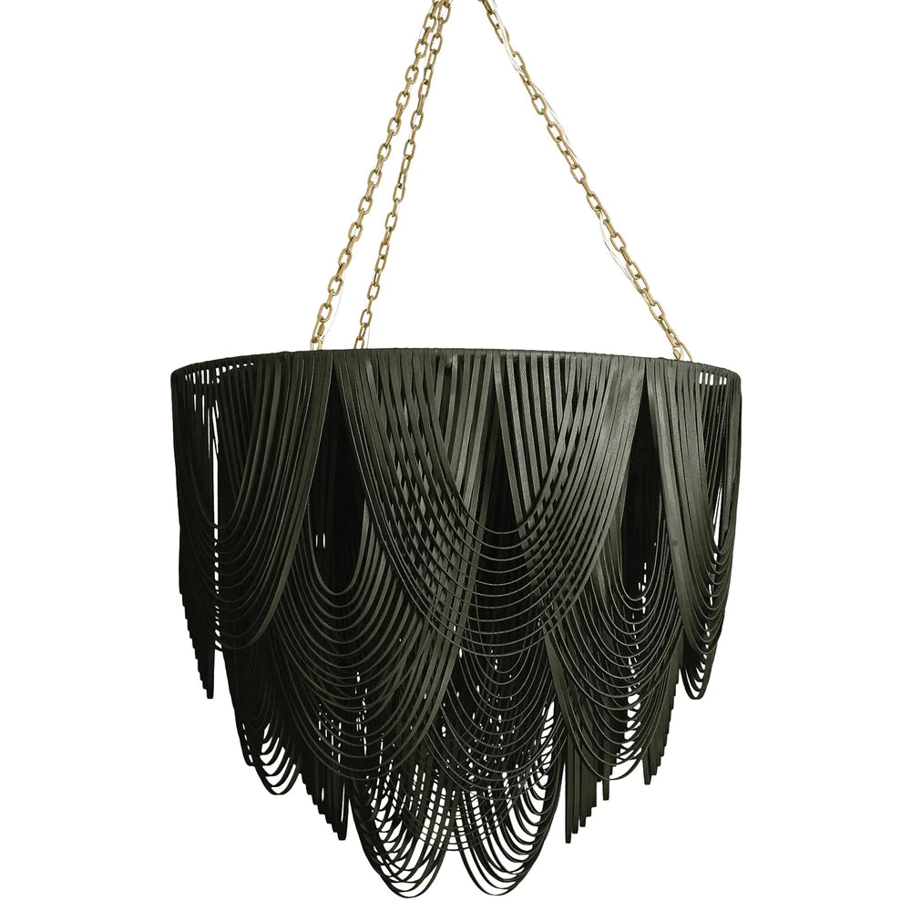 - Handcrafted with layered swags of tanned bovine leather for a graceful, organic look