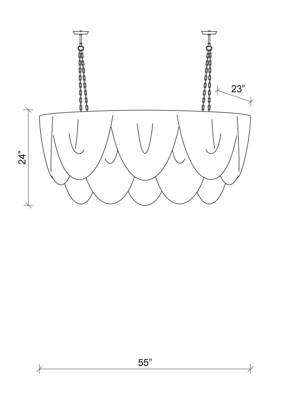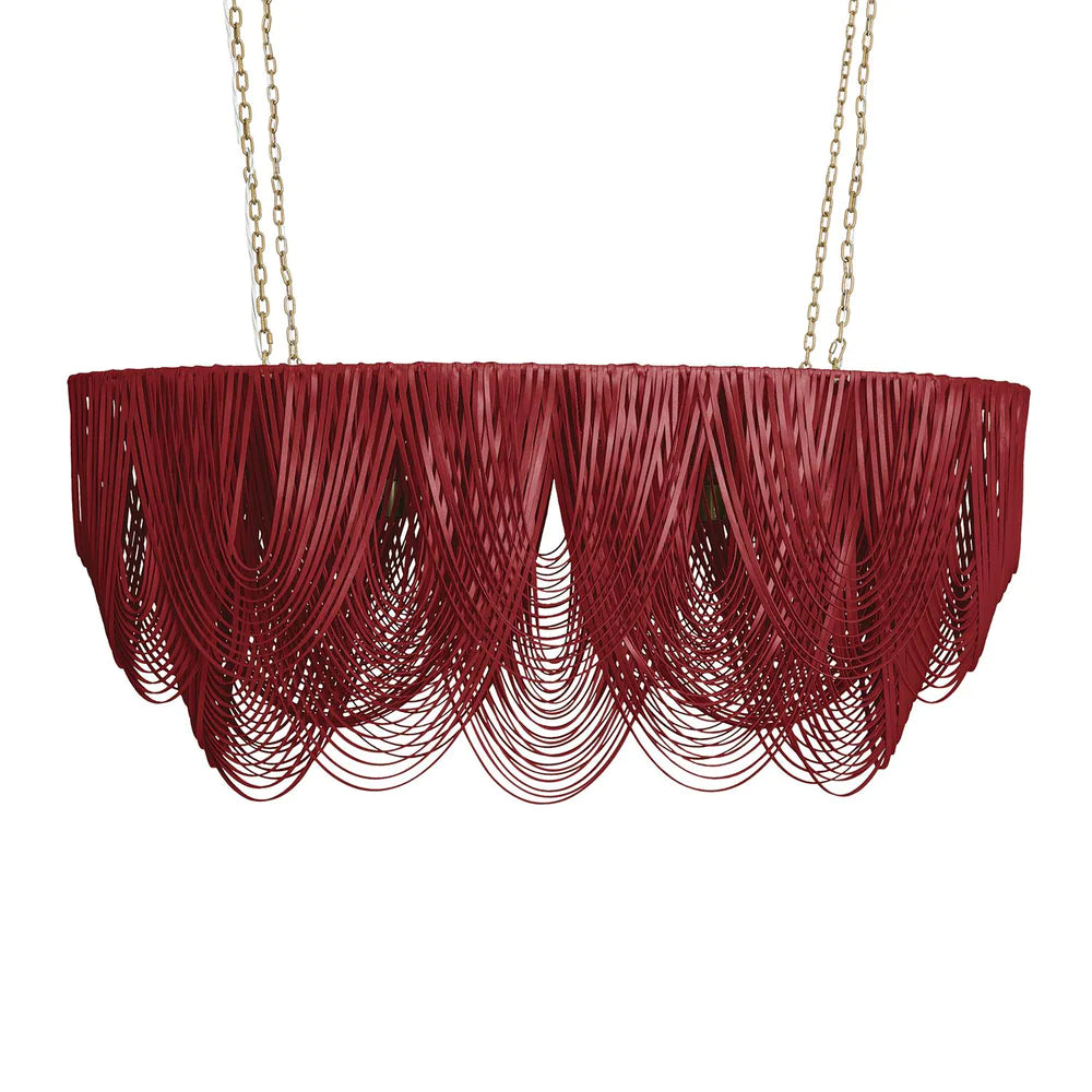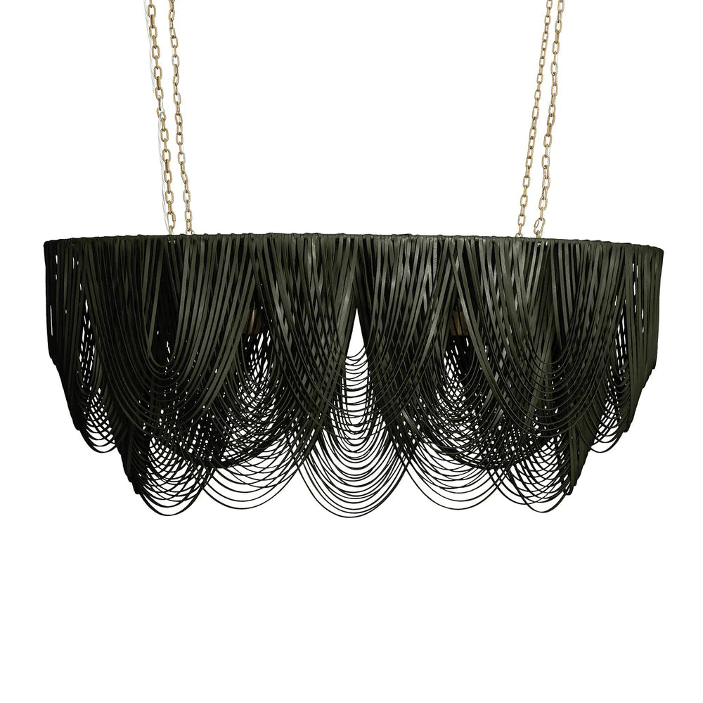 Elevate your interiors with the dramatic elegance of the Medium Oval Leather Whisper Chandelier - Whispered luxury in light, draped in leather.