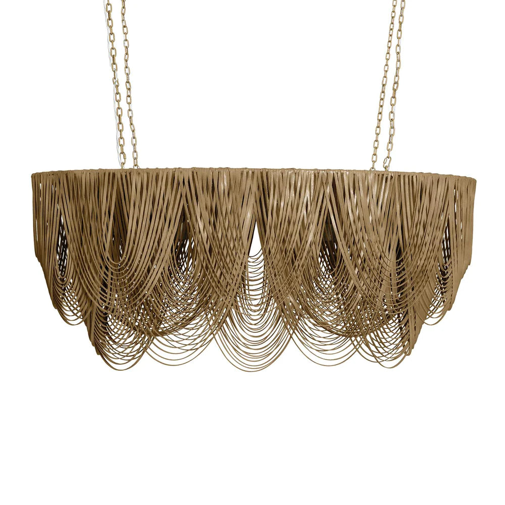 - Handcrafted with layered swags of tanned bovine leather for a graceful, organic look