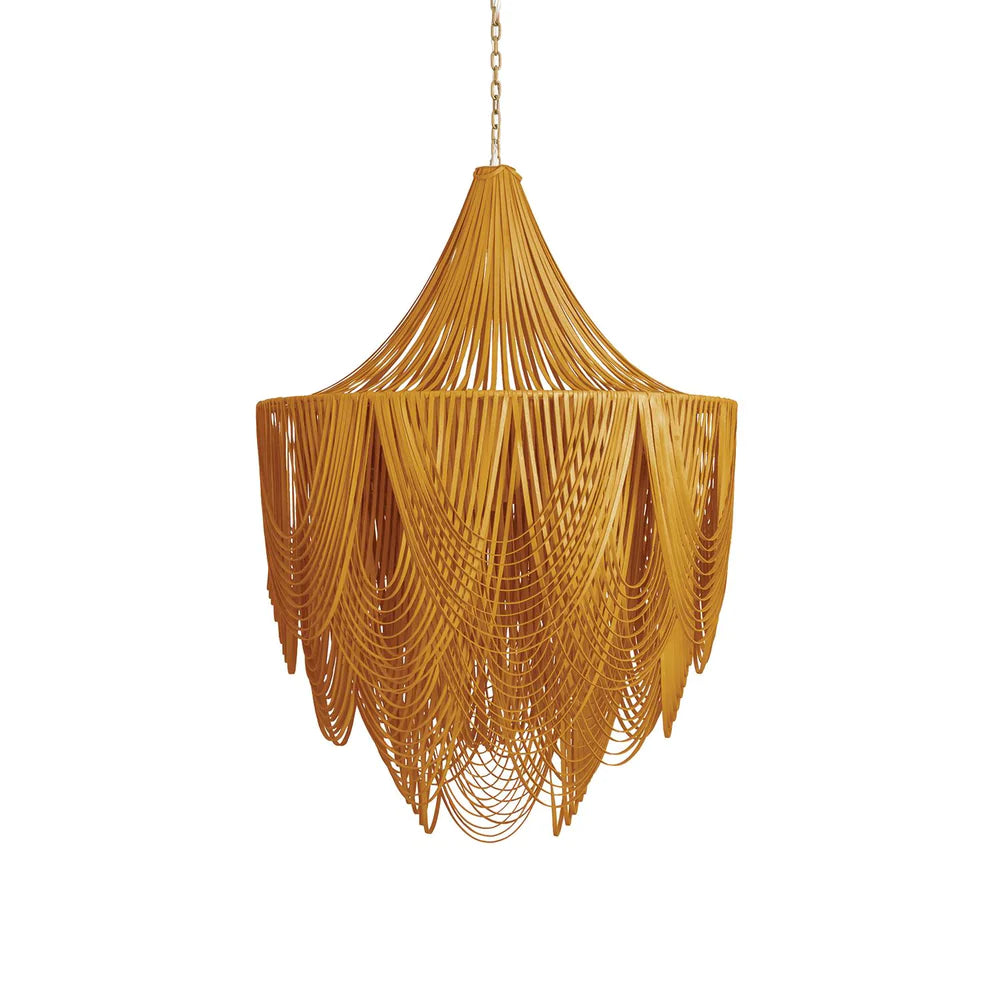- Handcrafted with layered swags of tanned bovine leather for a graceful, organic look