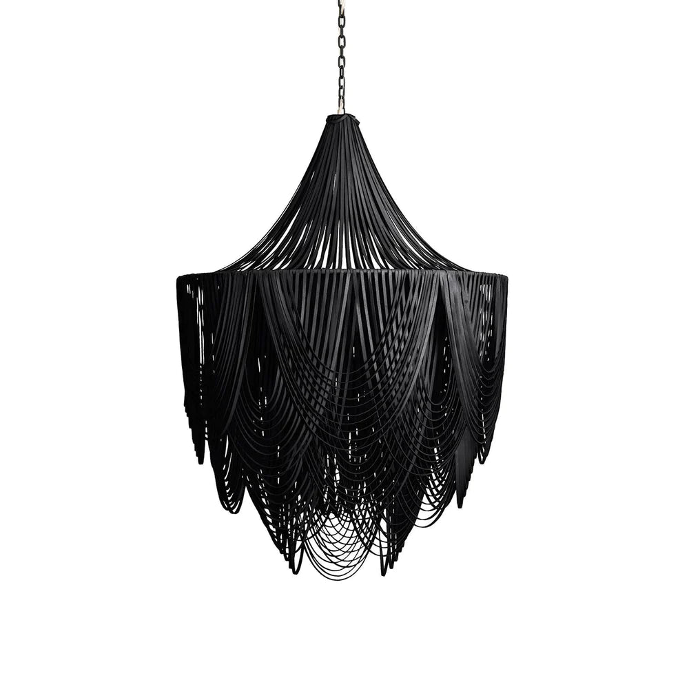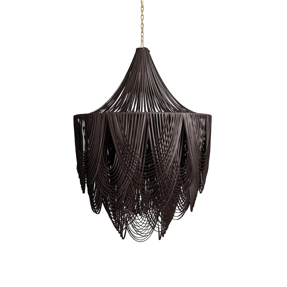 Elevate your interiors with the dramatic elegance of the Large Round Leather Whisper Chandelier - Whispered luxury in light, draped in leather.
