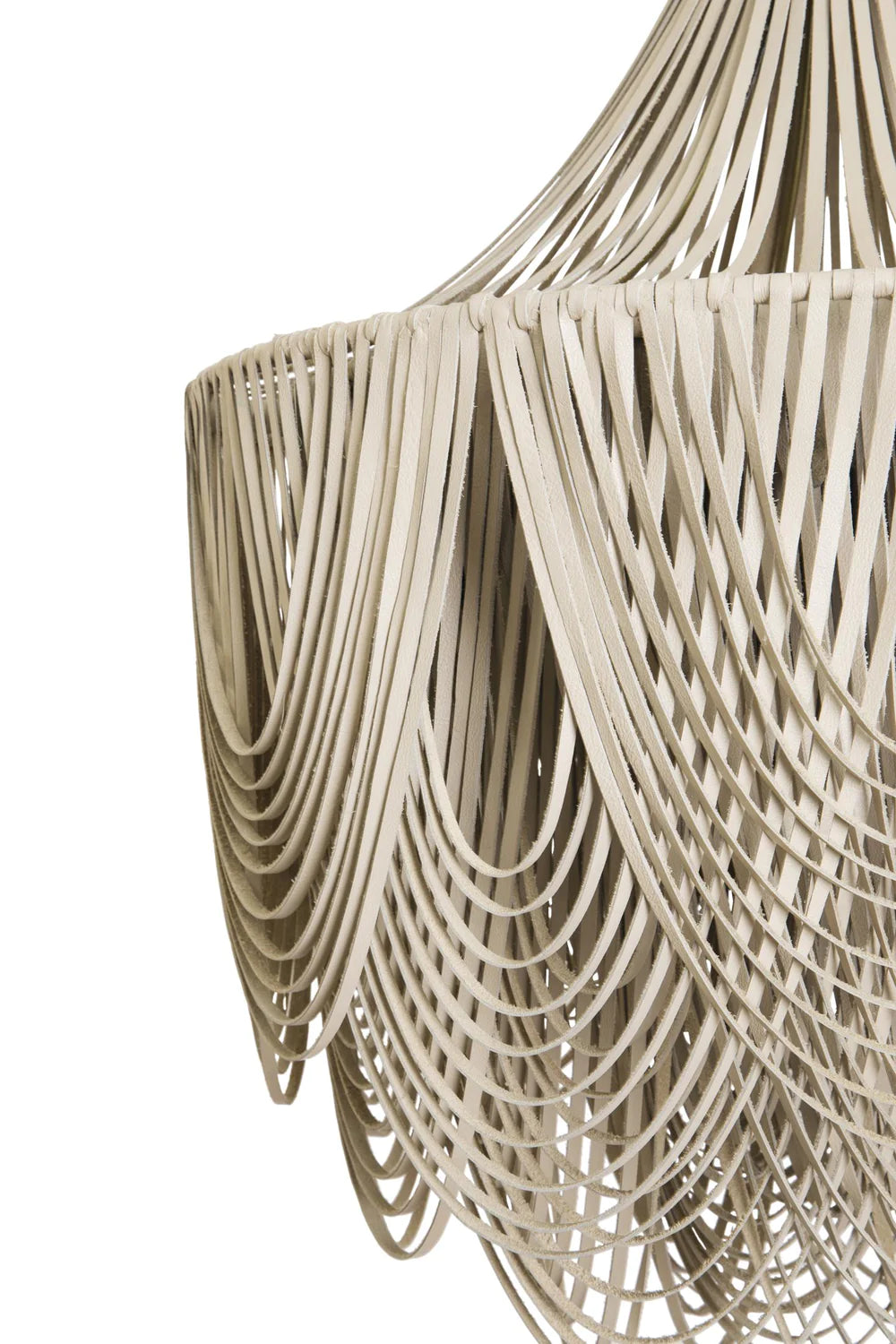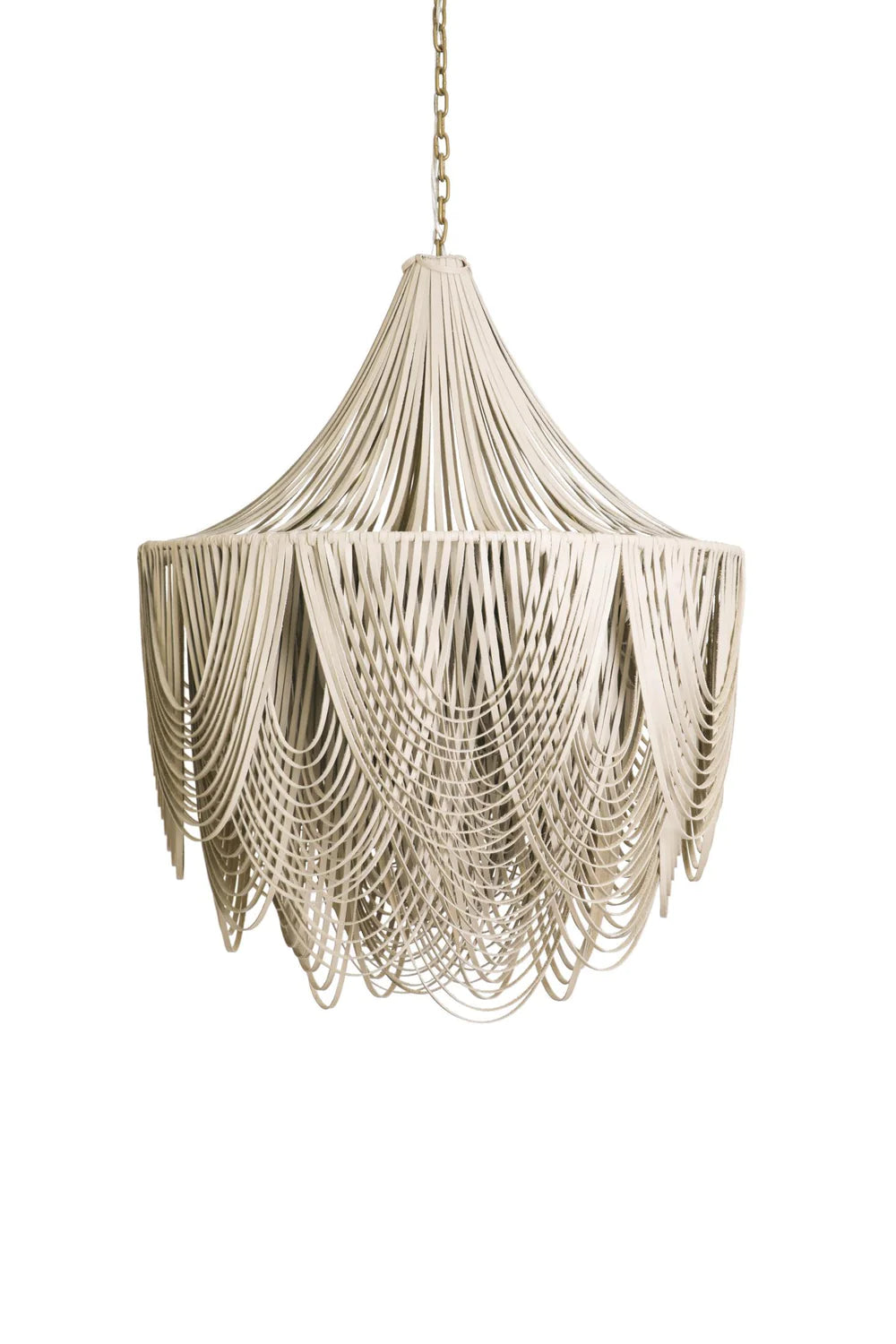 - Handcrafted with layered swags of tanned bovine leather for a graceful, organic look