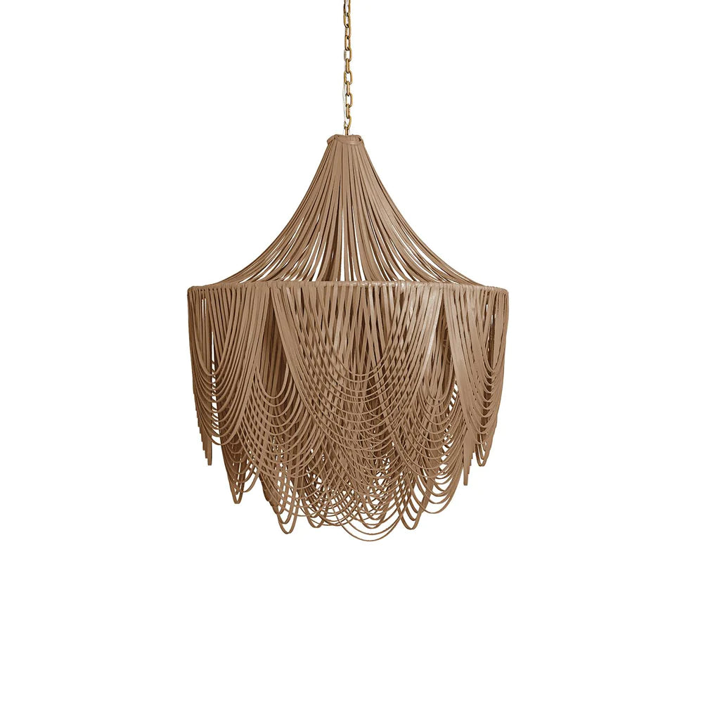 - Handcrafted with layered swags of tanned bovine leather for a graceful, organic look