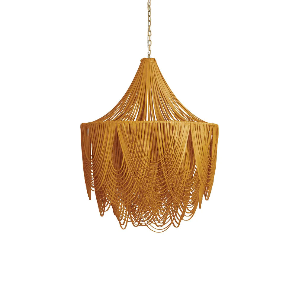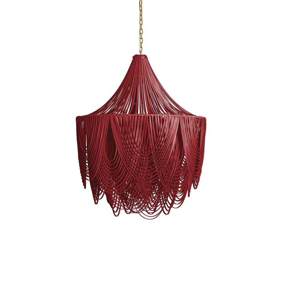 - Handcrafted with layered swags of tanned bovine leather for a graceful, organic look