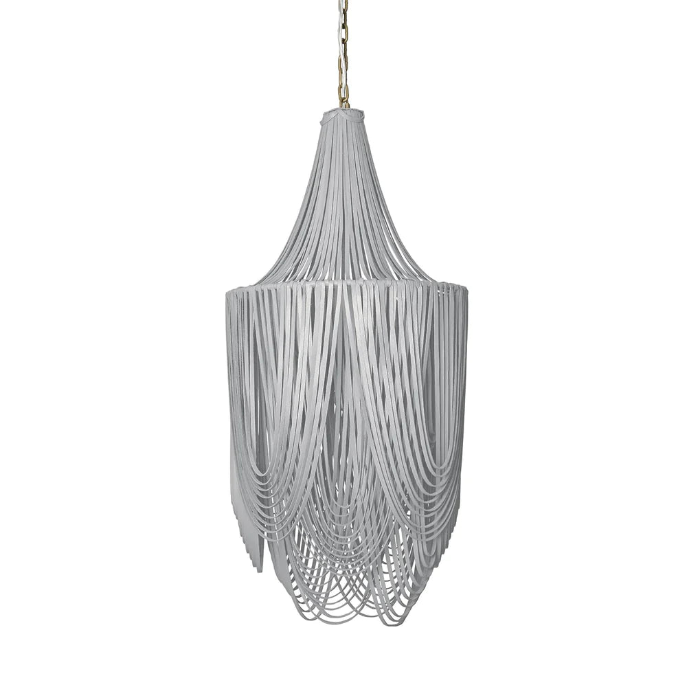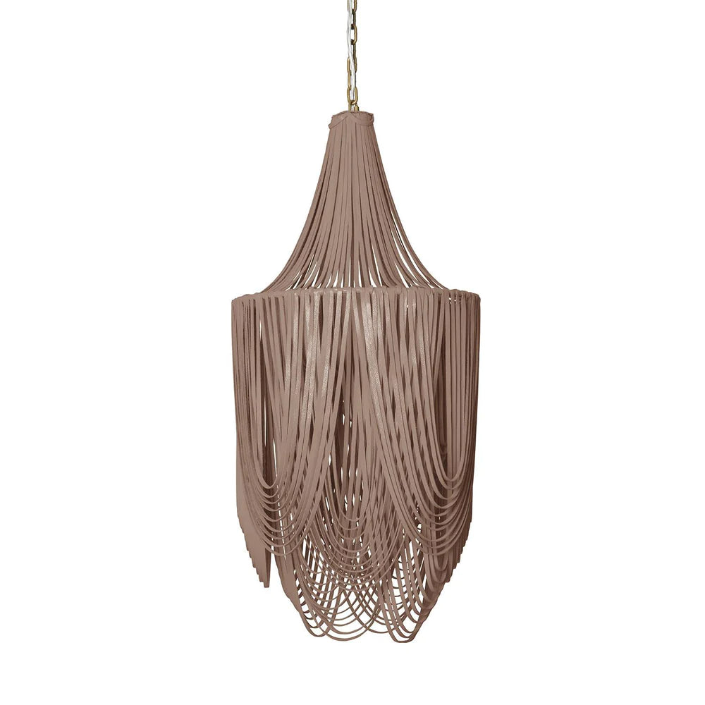 - Handcrafted with layered swags of tanned bovine leather for a graceful, organic look