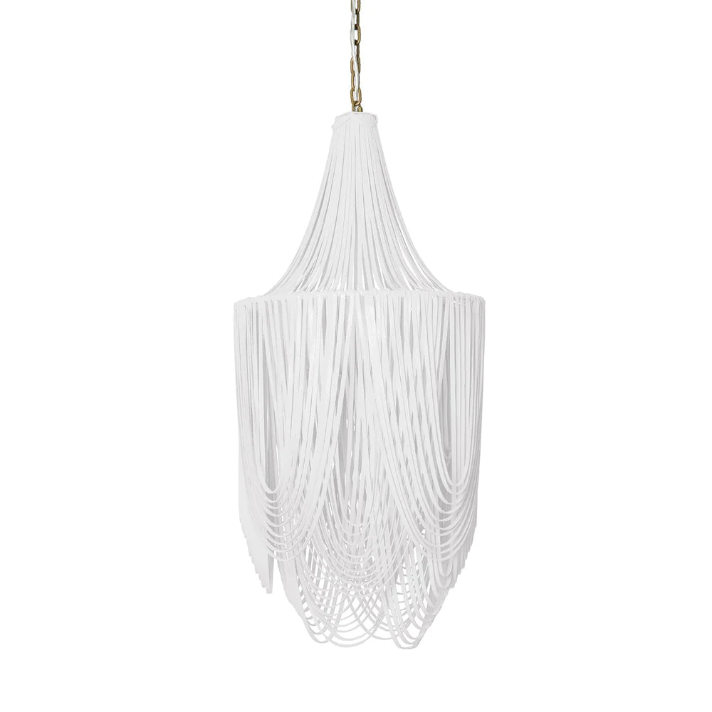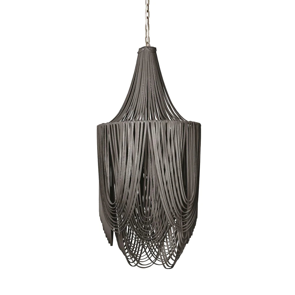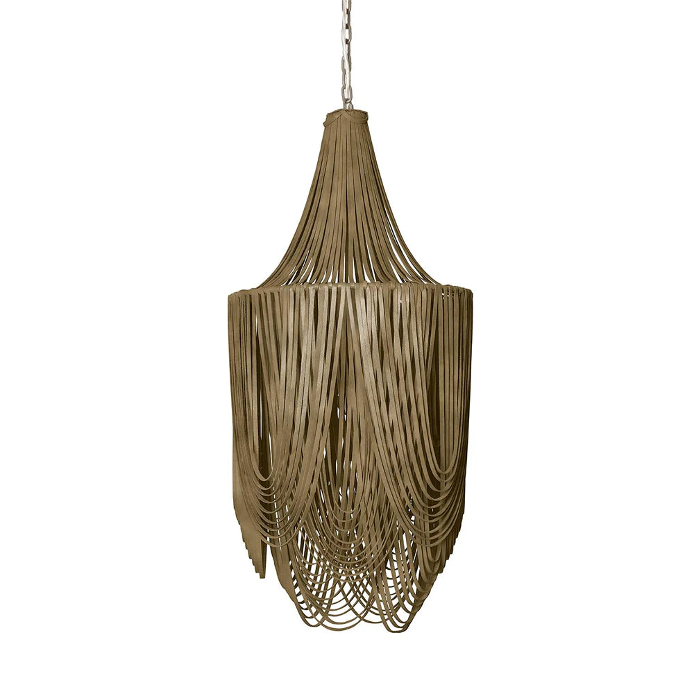 - Handcrafted with layered swags of tanned bovine leather for a graceful, organic look