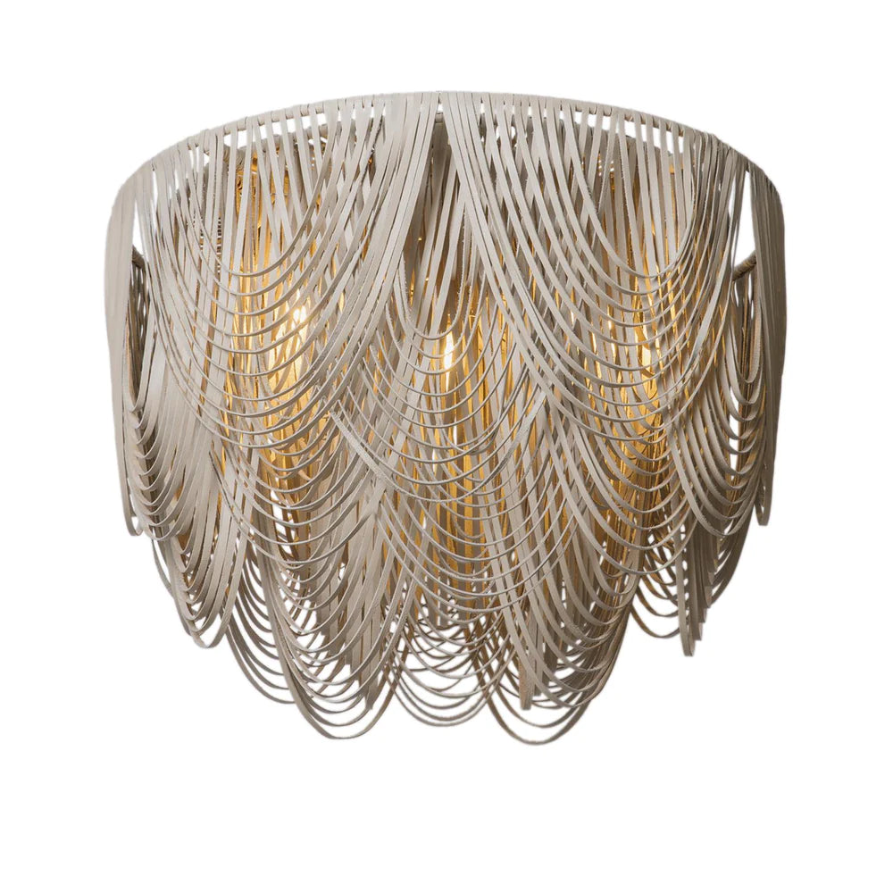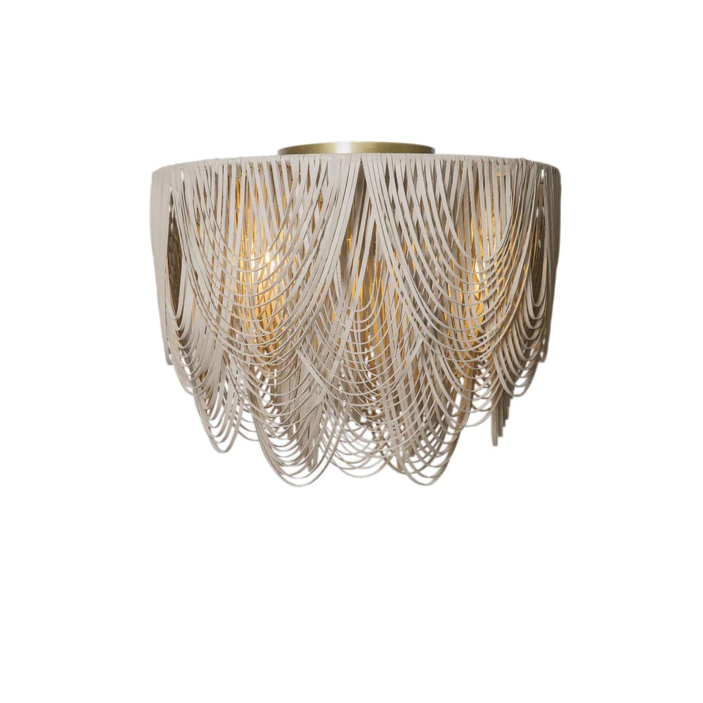 - Handcrafted with layered swags of tanned bovine leather for a graceful, organic look