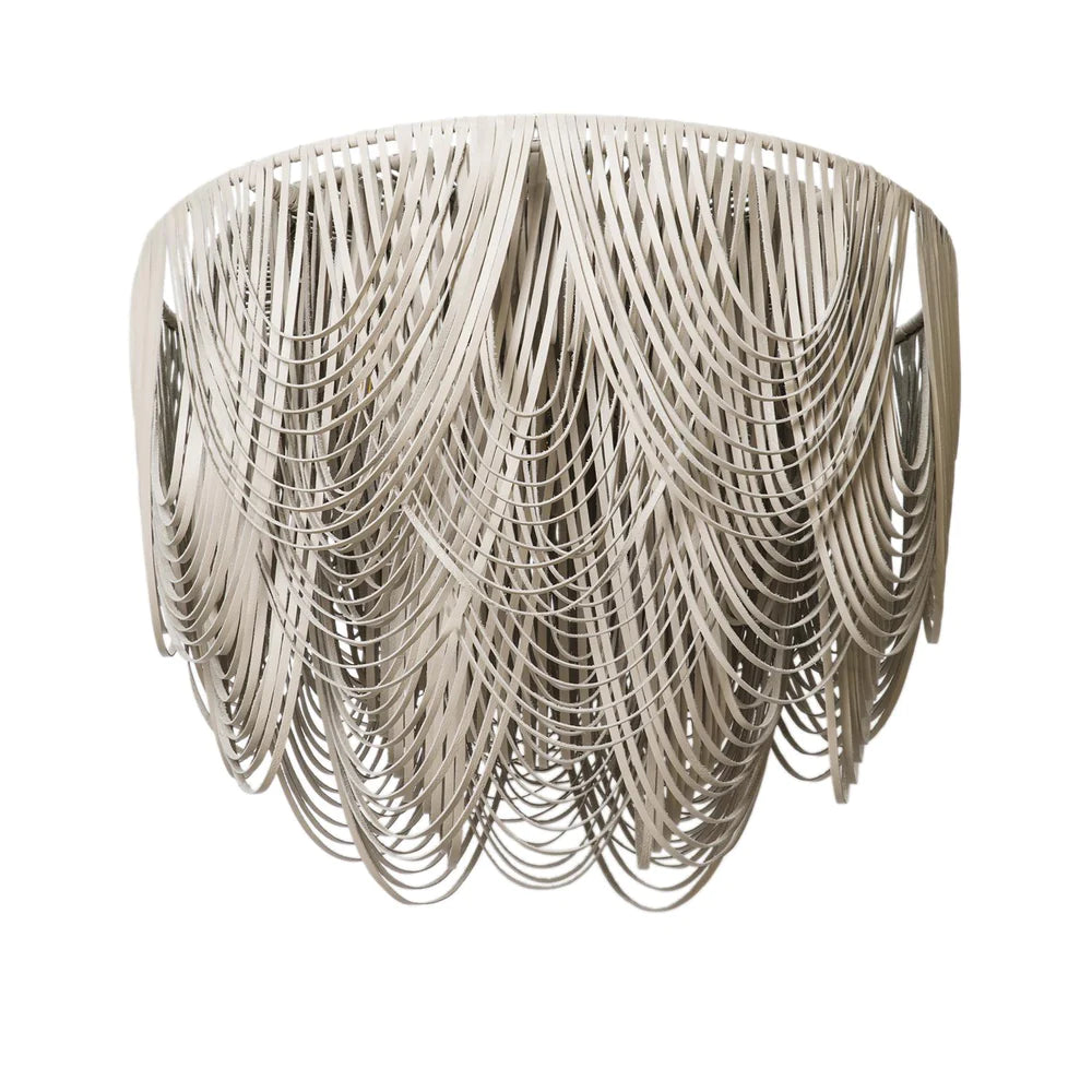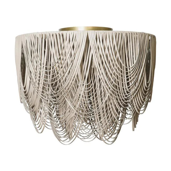 Elevate your interiors with the dramatic elegance of the Medium Round Leather Whisper Flush Mount - Whispered luxury in light, draped in leather.