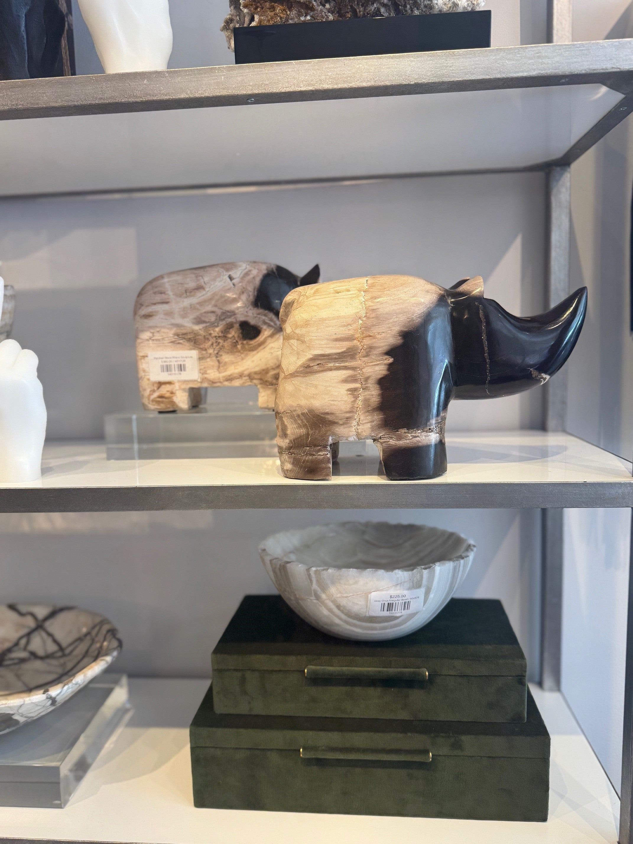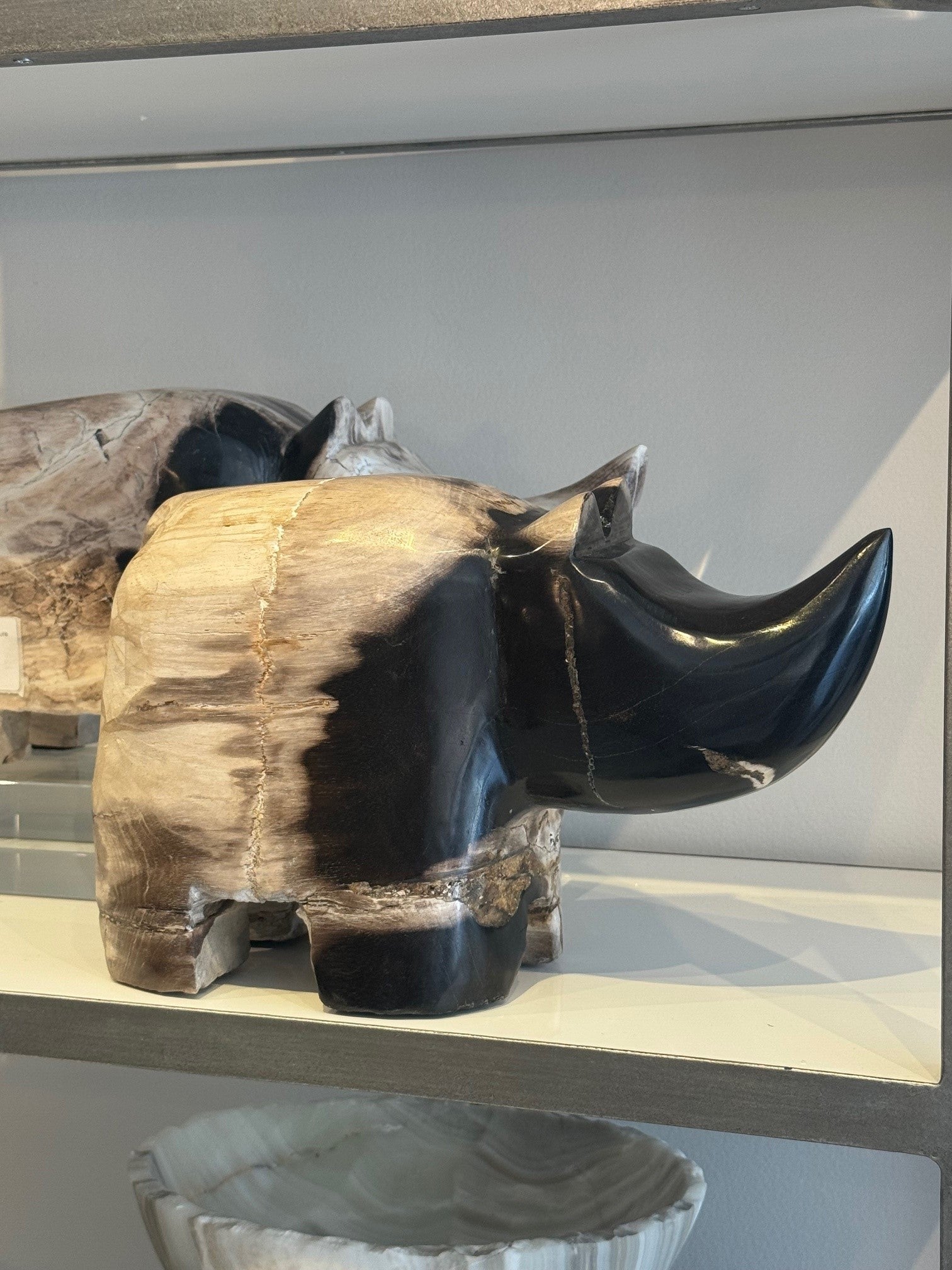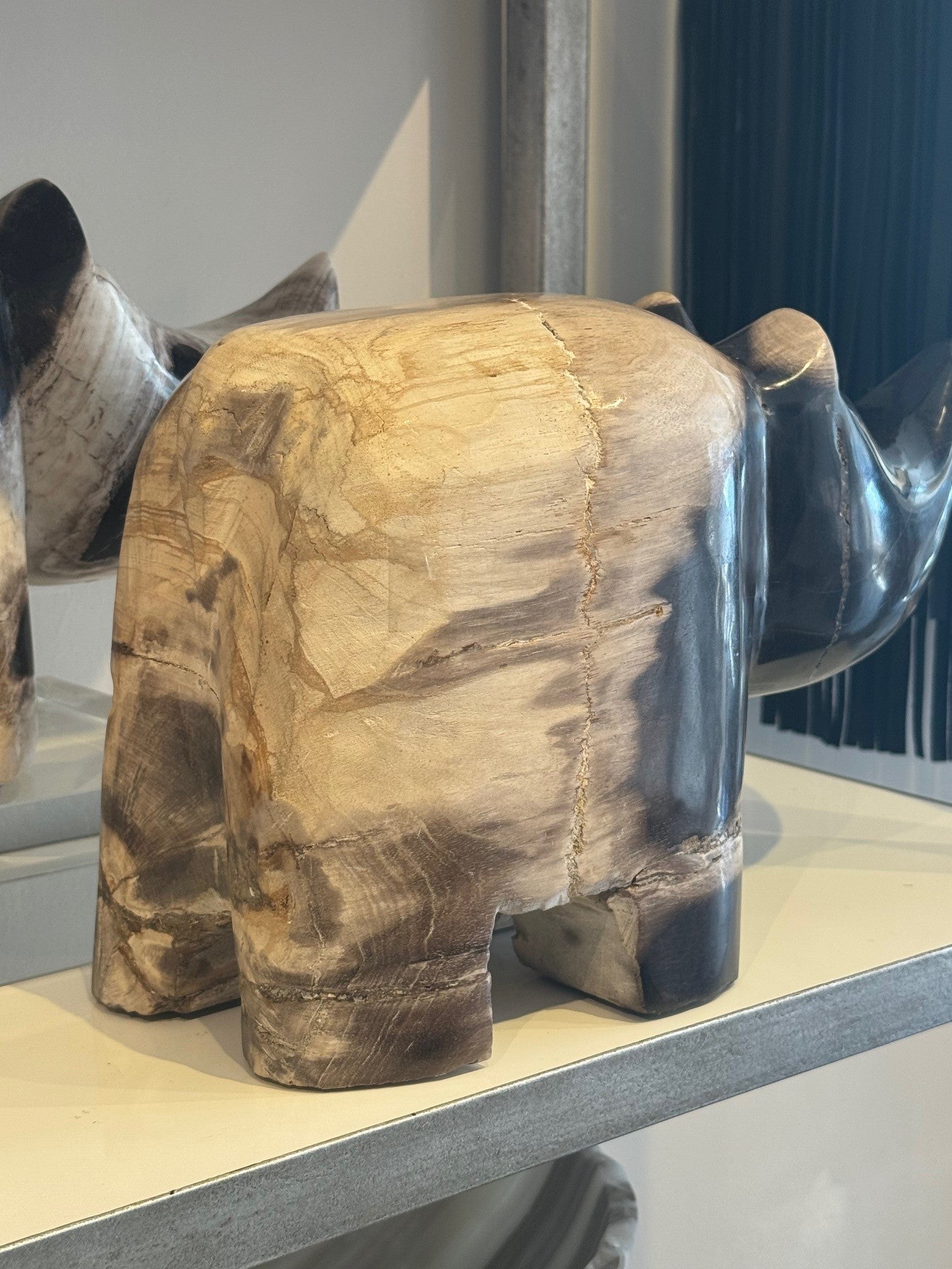 Petrified Wood Rhino Sculpture – Hand-Carved Fossil Decor