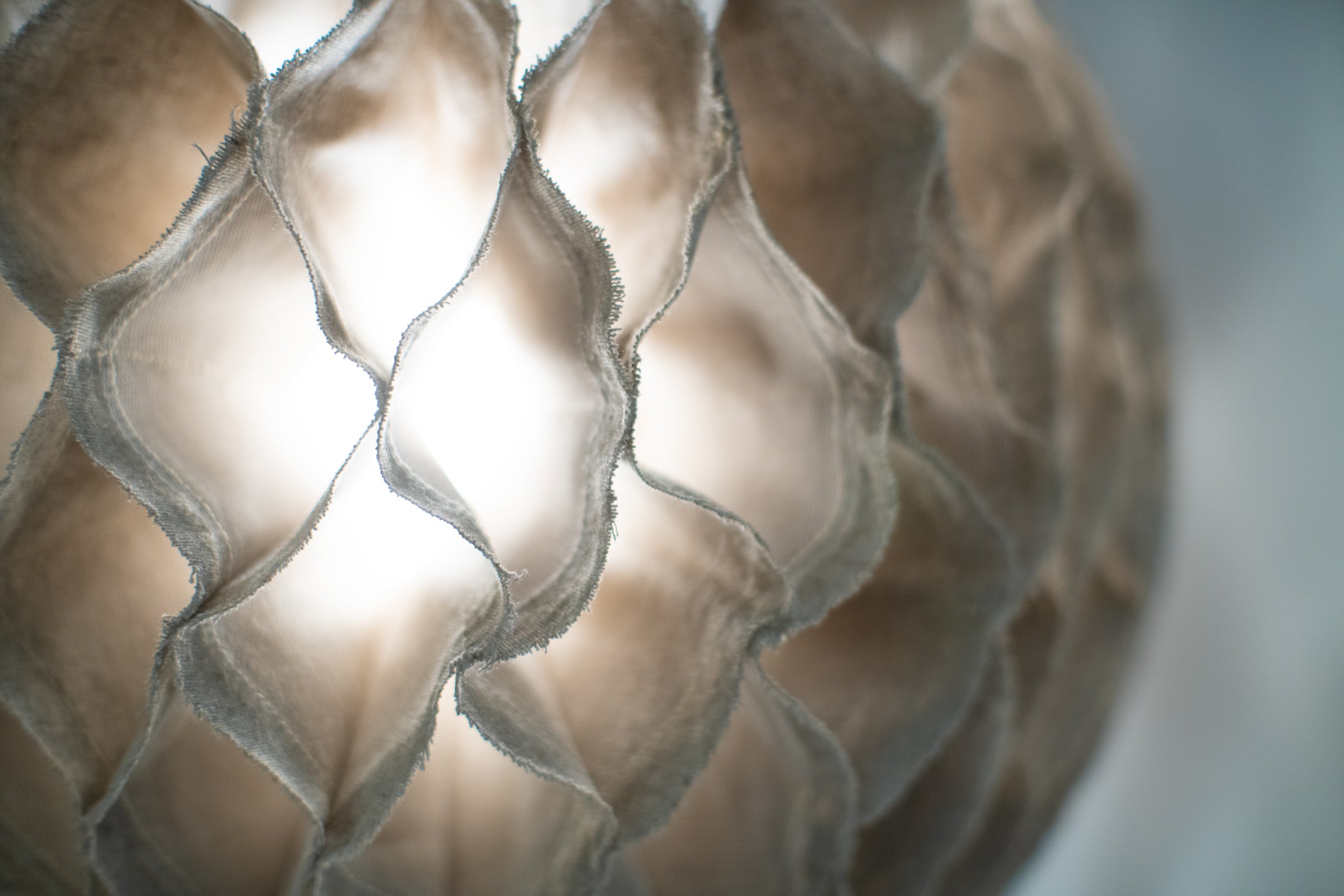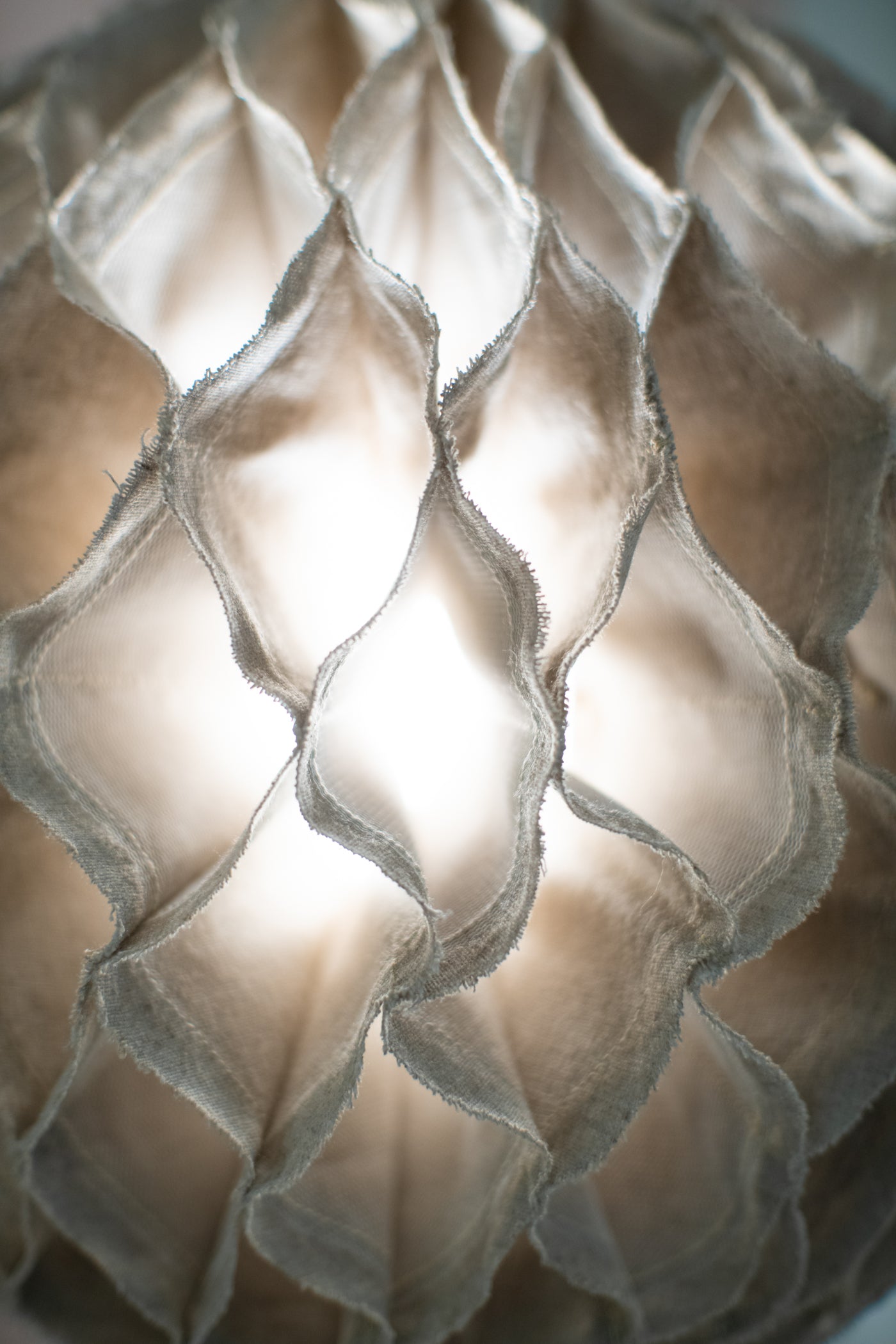 - TAUPE HONEYCOMB LINEN/TEAKWOOD TRIPOD BASE