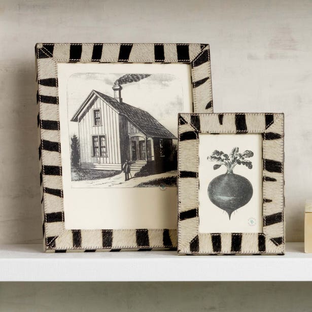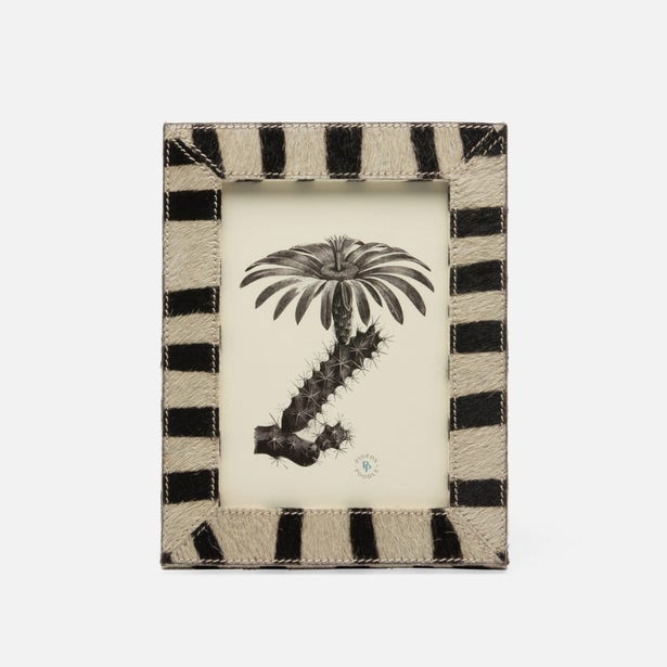 💡Design and Materials: Features a striking design that combines animal-inspired prints and classic stripes. Crafted from high-quality printed hair-on-hide, each frame is finished with accent stitching for added elegance and durability.