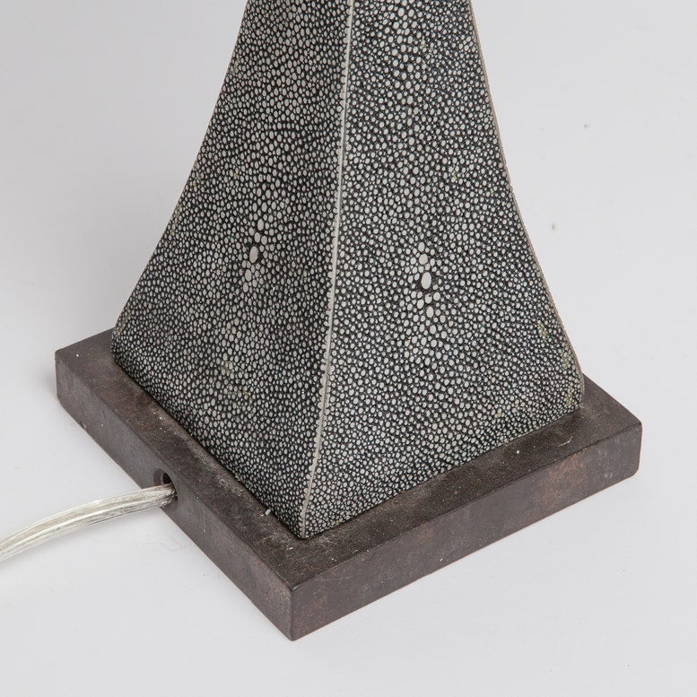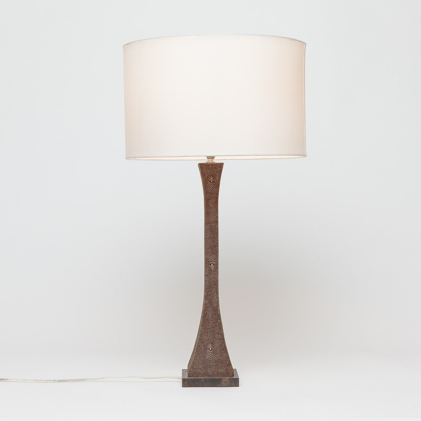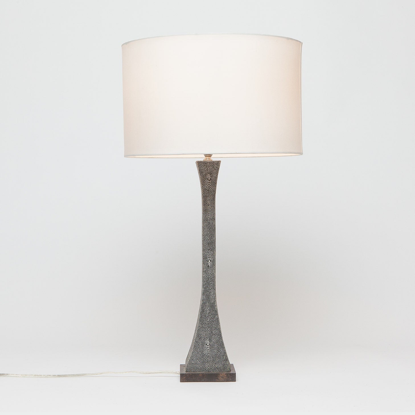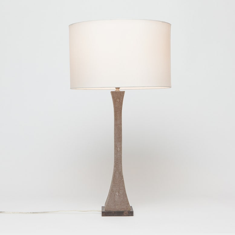 - Faux Shagreen Texture: Covered in faux shagreen material, the lamp offers a luxurious tactile experience while adding visual interest and texture to the decor.