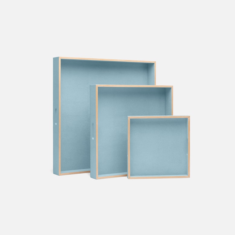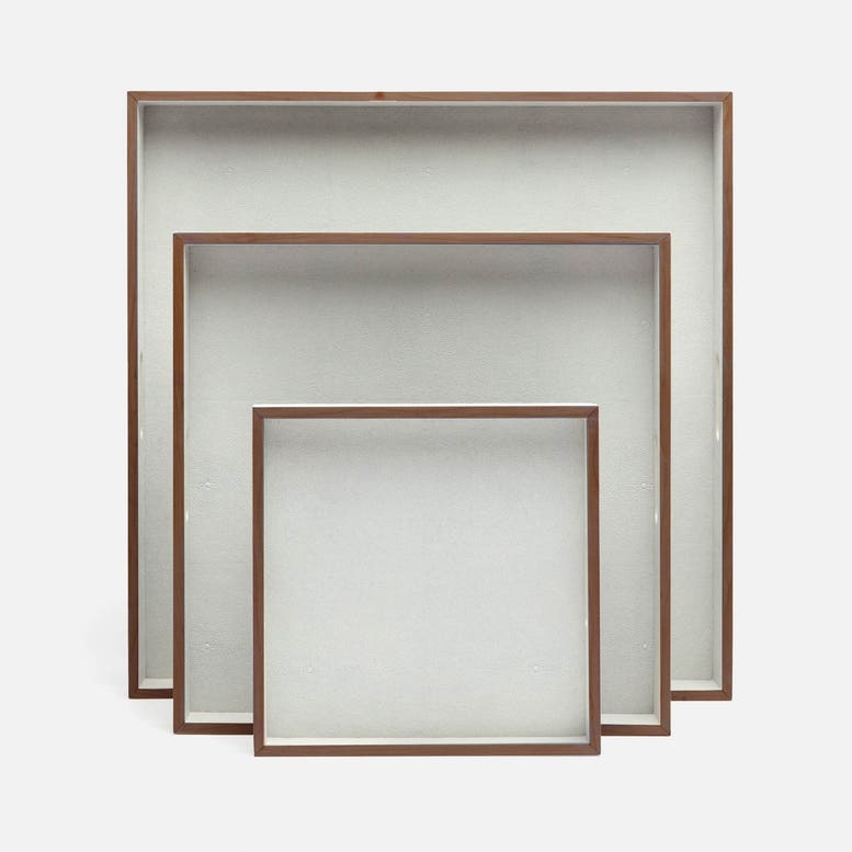 💡Design and Materials: Crafted with a textured faux shagreen surface framed in finely finished wood, these trays balance modern luxury with organic charm, creating a tactile and visually rich piece.