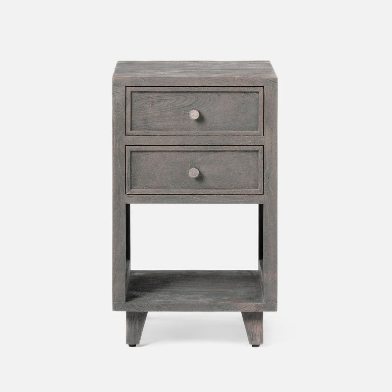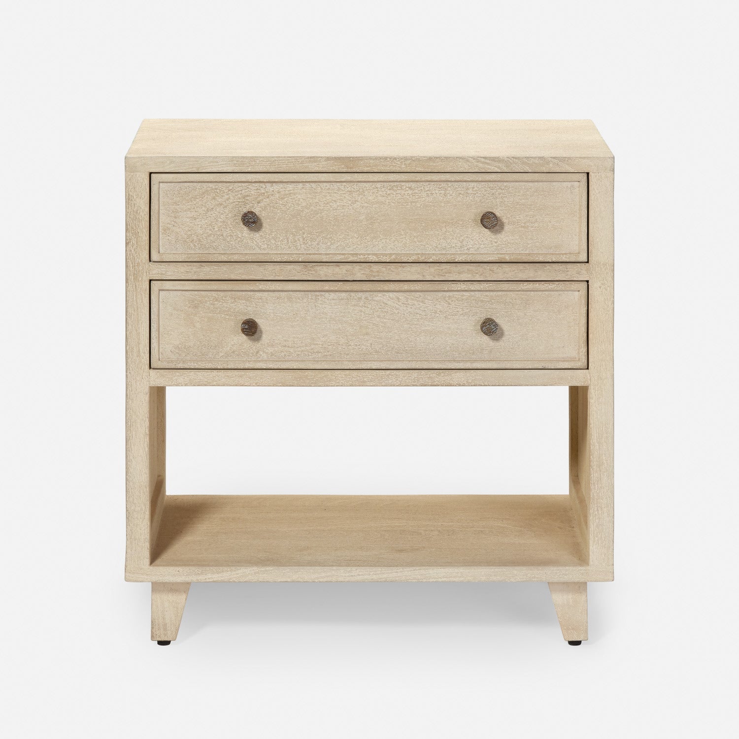 Elevate your bedroom with the Made Goods Allesandro Nightstand, where rustic mango wood meets a streamlined design, creating a charming and versatile addition to your living space.