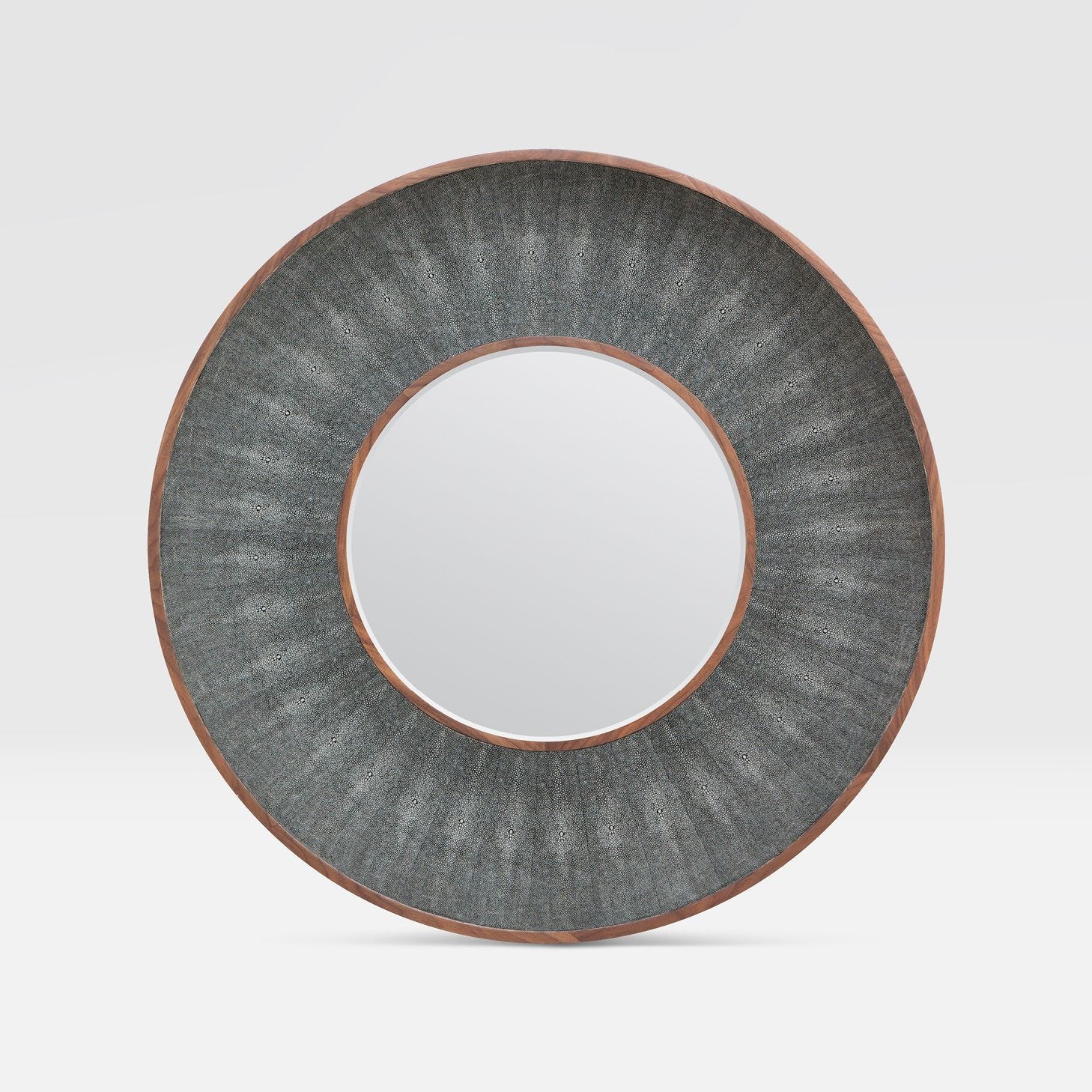 Veneer Trim Options: Walnut Veneer or Sycamore Veneer trim tastefully highlights the faux-shagreen material, enhancing the overall sophistication of the mirror.