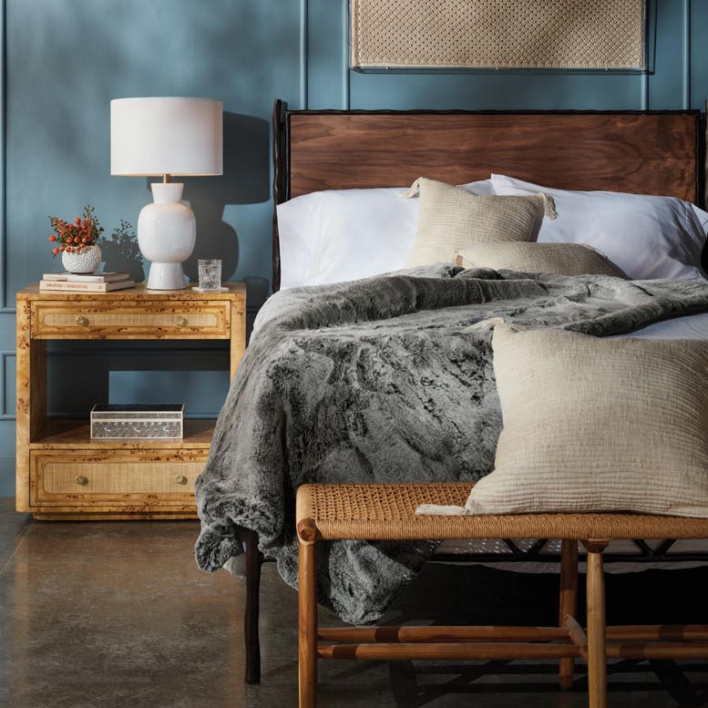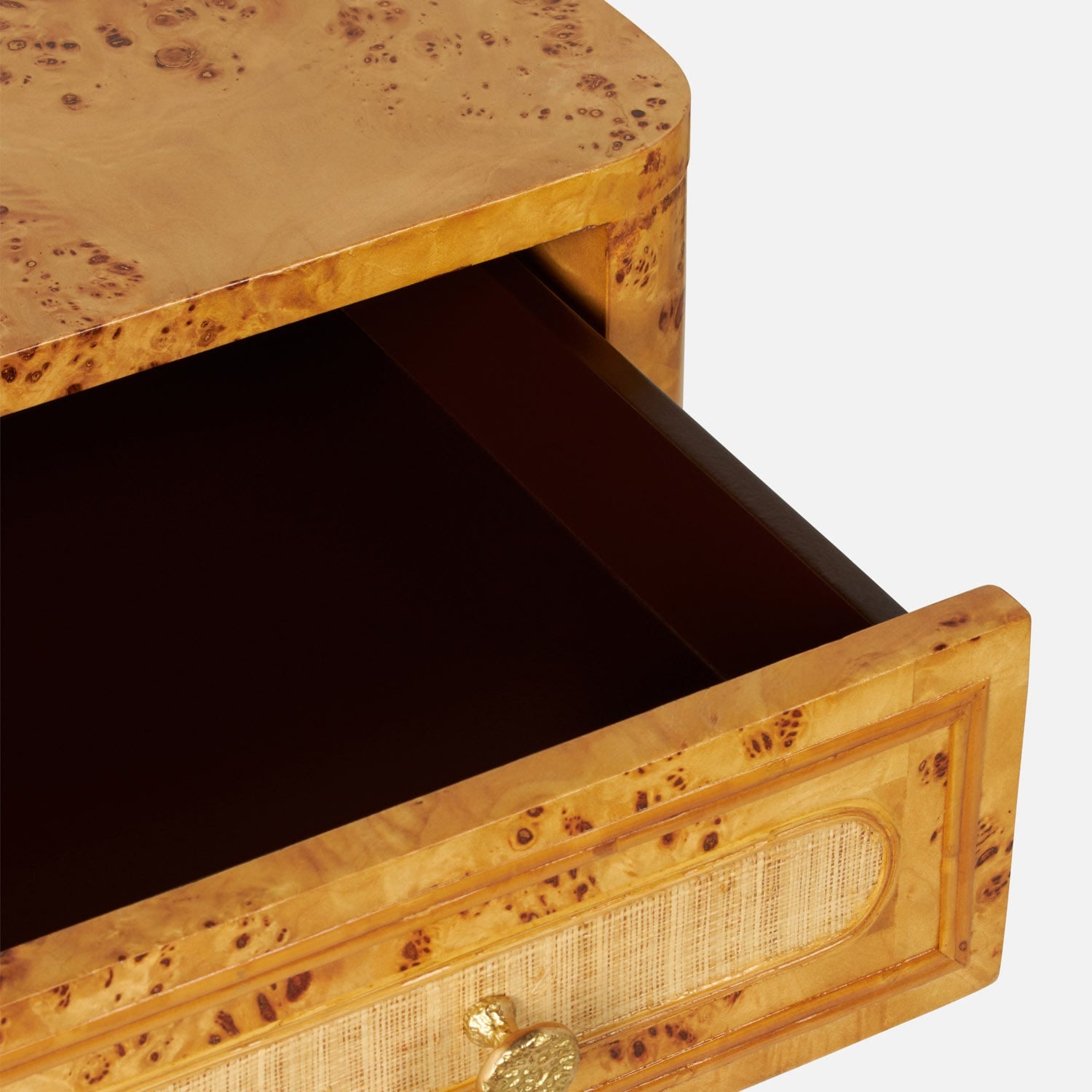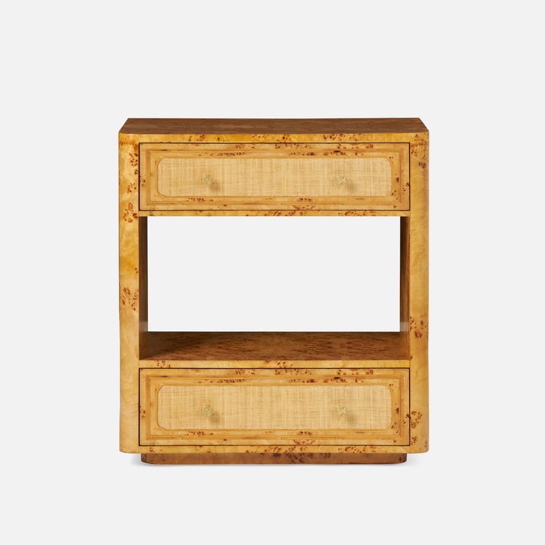 Made Goods Beaumont Satin Mappa Burl Raffia Nightstand