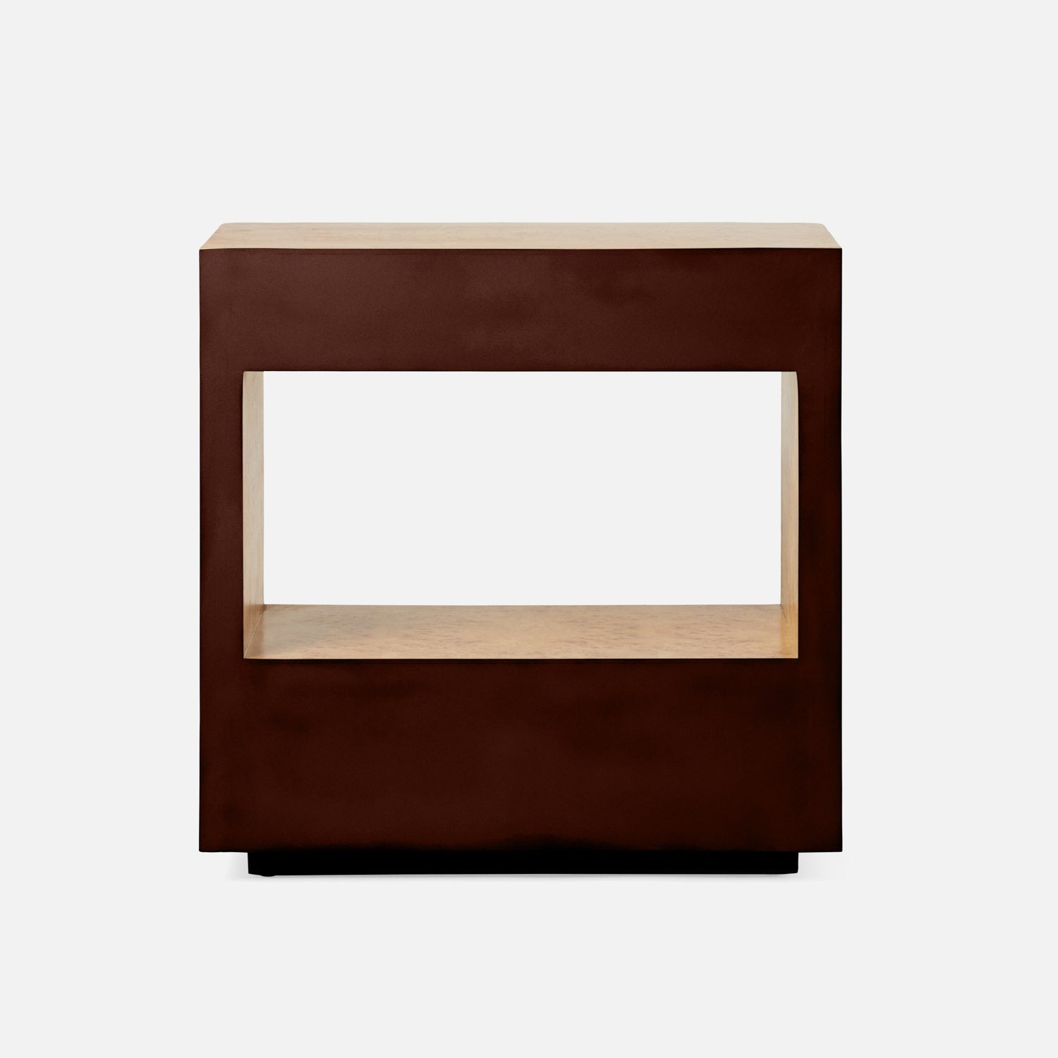 • Center opening provides additional storage and highlights the beauty of satin mappa burl.