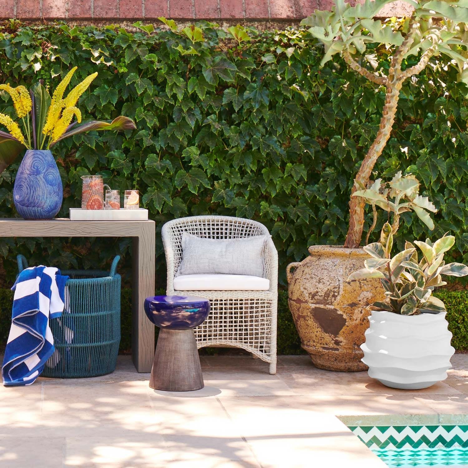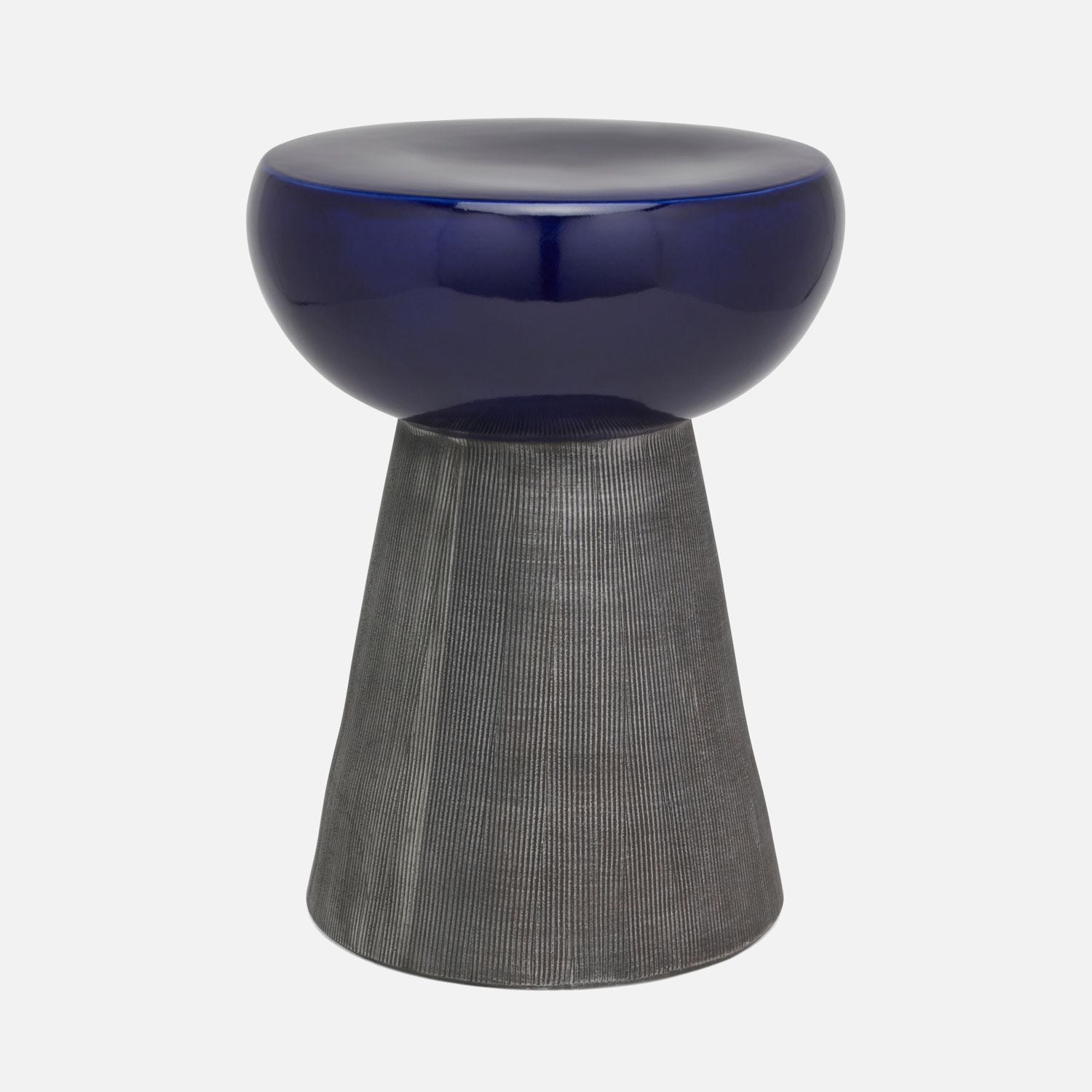 Made Goods presents the Loz Stool with a glossy top and a tapered bottom of metabolized black-wash glaze. This handmade garden stool has organic markings in the glaze and the colors are separated by an imperfect line making each stool unique. The mushroom shape of this ceramic garden stool works well in your home both indoors or outdoors. Use the modern contemporary Loz as extra seating, a place for drinks, or as a display for a sculpture or plant.