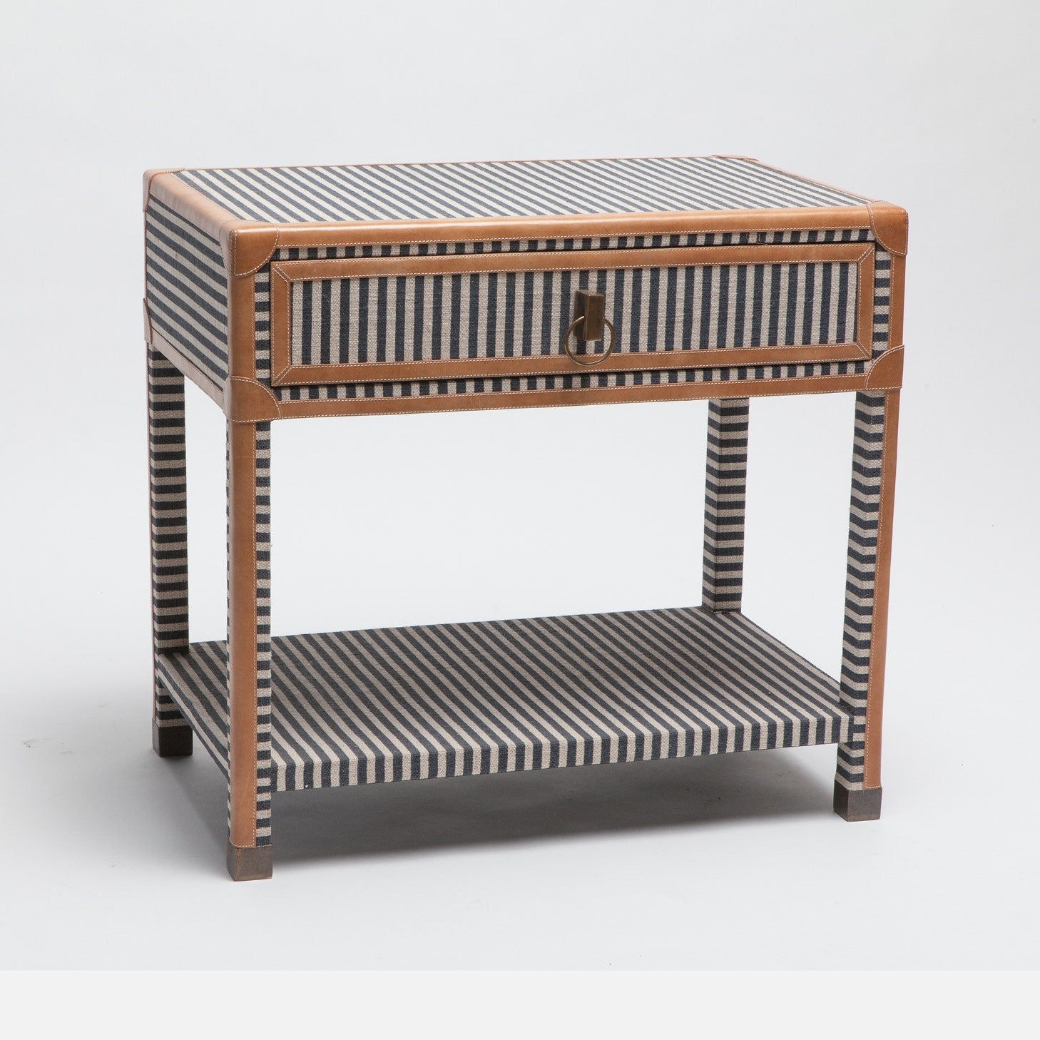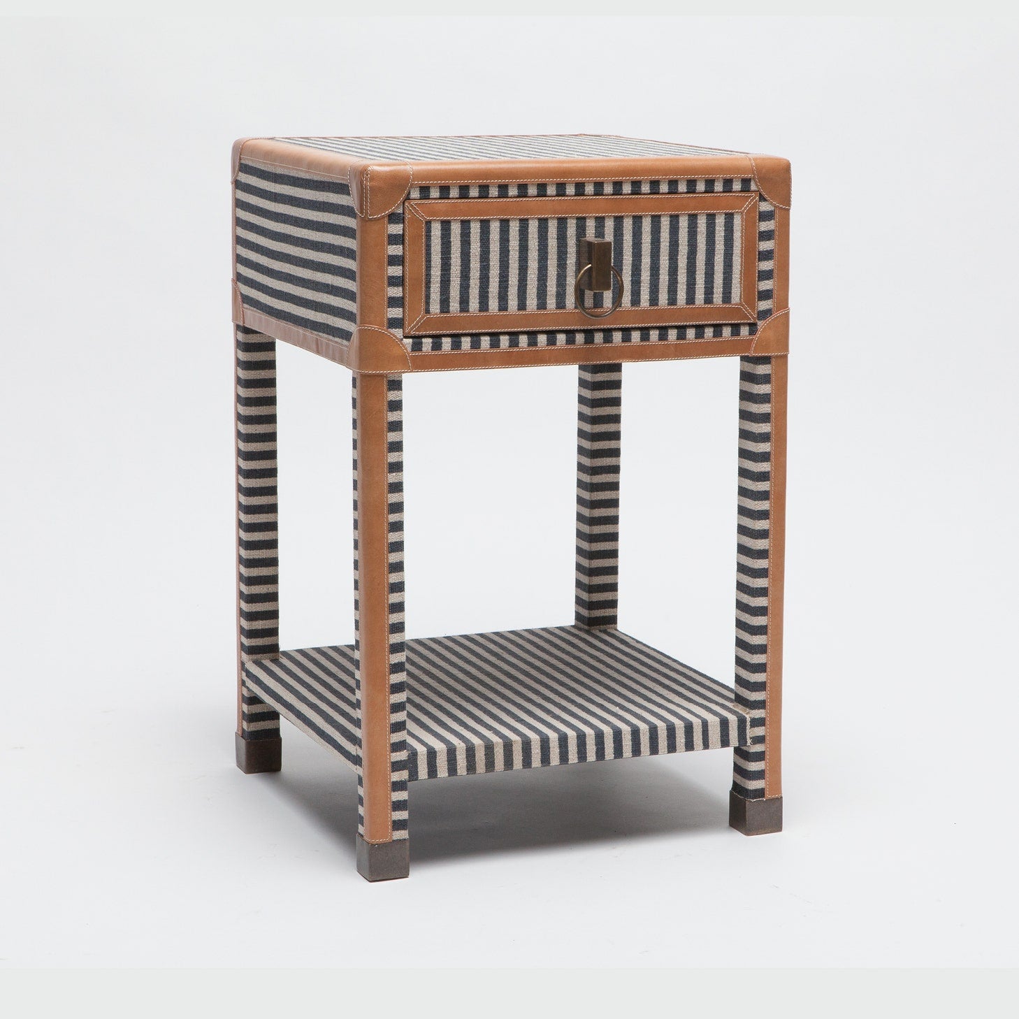 Made Goods Edward Striped Canvas and Leather Trim Nightstand