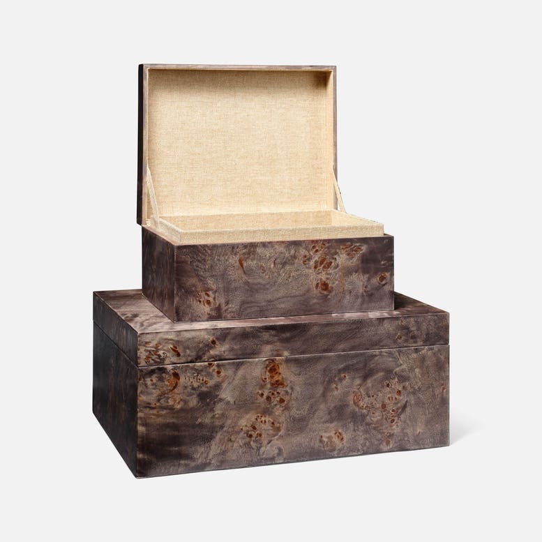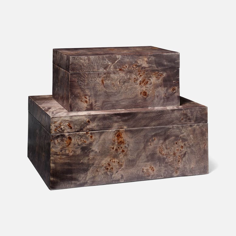 - Set of Two: Sold as a set of two boxes with different dimensions, providing versatility in storage options and aesthetic arrangements.