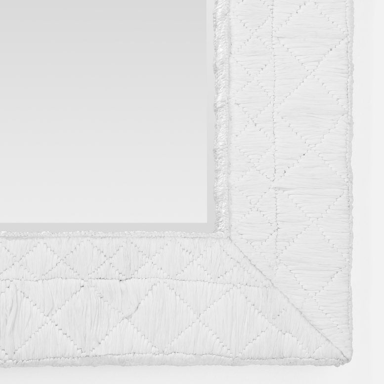 Quilted Texture: The Farrimond Mirror features a quilted texture that is a triumph of technique, showcasing the intricate hand-woven flat-weave rattan in a bleached white finish.