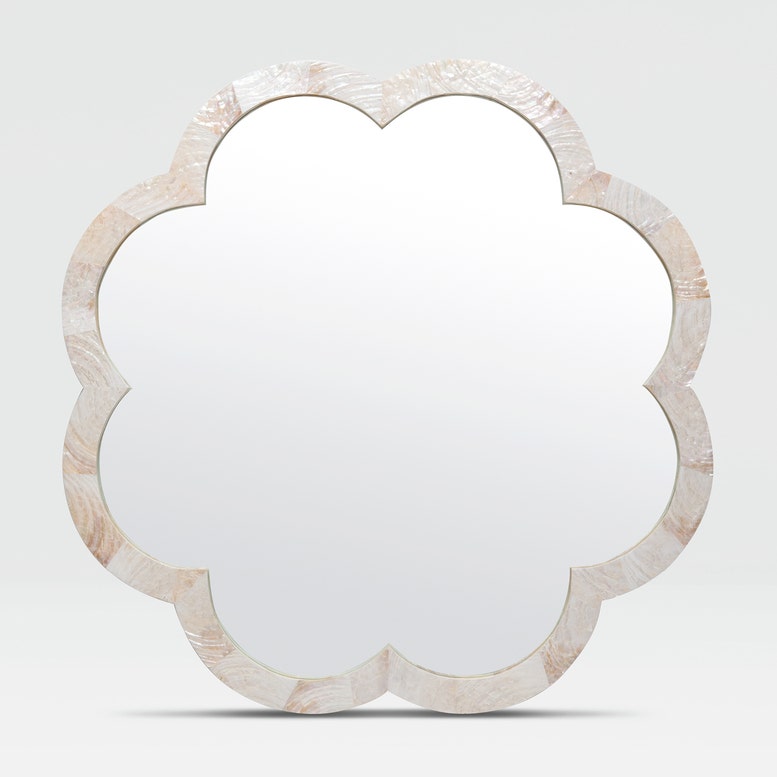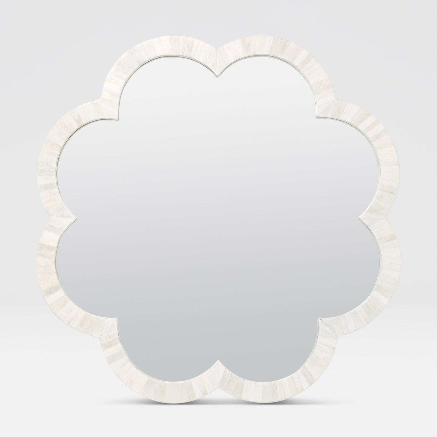 π Description: Elevate your space with the geometric floral elegance of the Fiona Mirror from Made Goods. Inspired by a floral motif, this mirror showcases a dramatic shape that seamlessly blends into a wide range of interiors. The Fiona Mirror adds a touch of sophistication while offering a captivating design reminiscent of nature's beauty. In stock and ready to enhance your decor, the Fiona Mirror is a versatile piece that complements various styles.