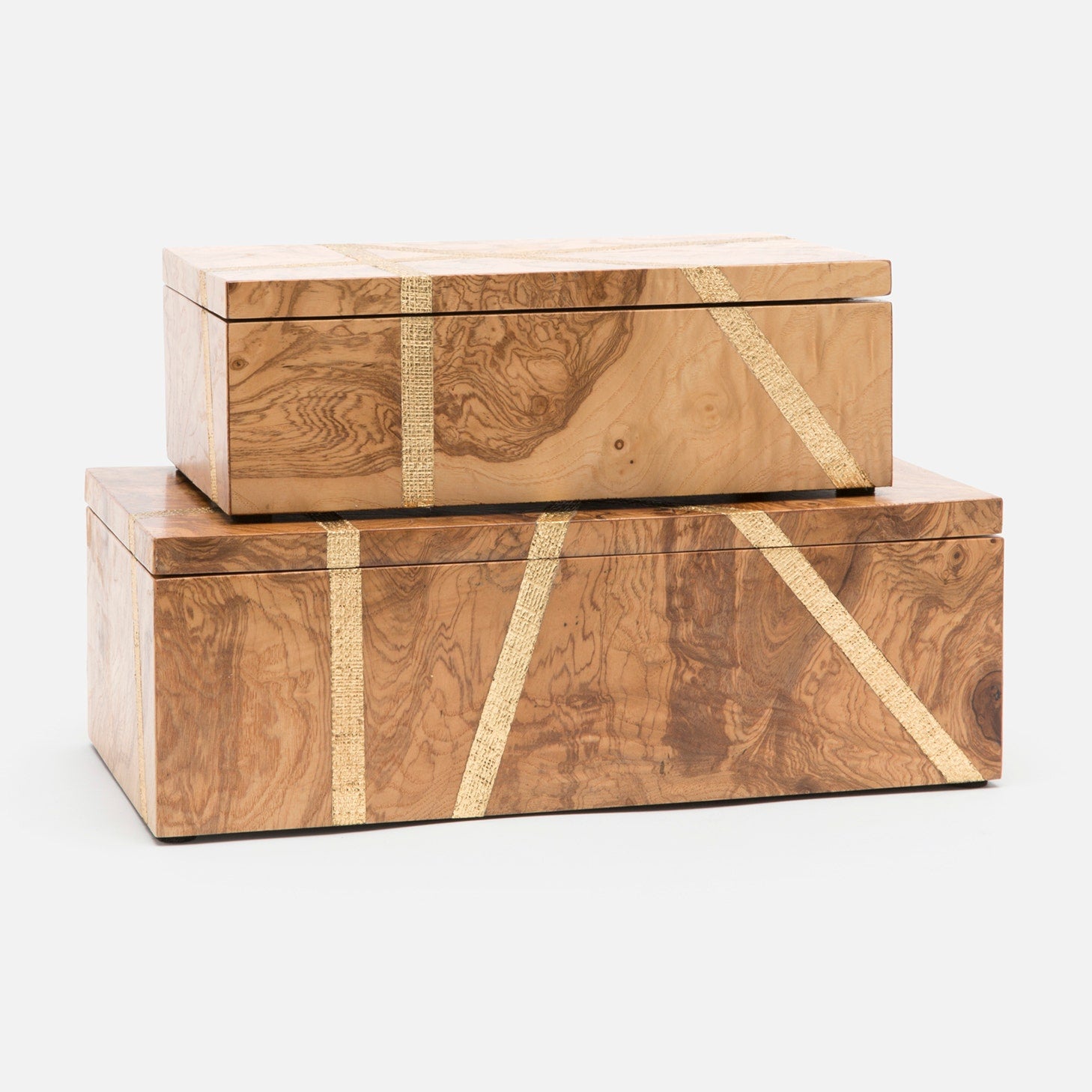 💡 Design and Material: A set of two elegantly designed boxes that seamlessly blend natural materials and exquisite craftsmanship. Crafted from olive ash wood, these boxes feature captivating patterns that accentuate their organic beauty. Adorned with ribbon-like raffia stripes, FREYA exudes a refined charm, adding a touch of rustic elegance to any space.