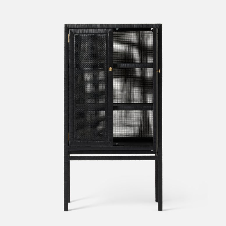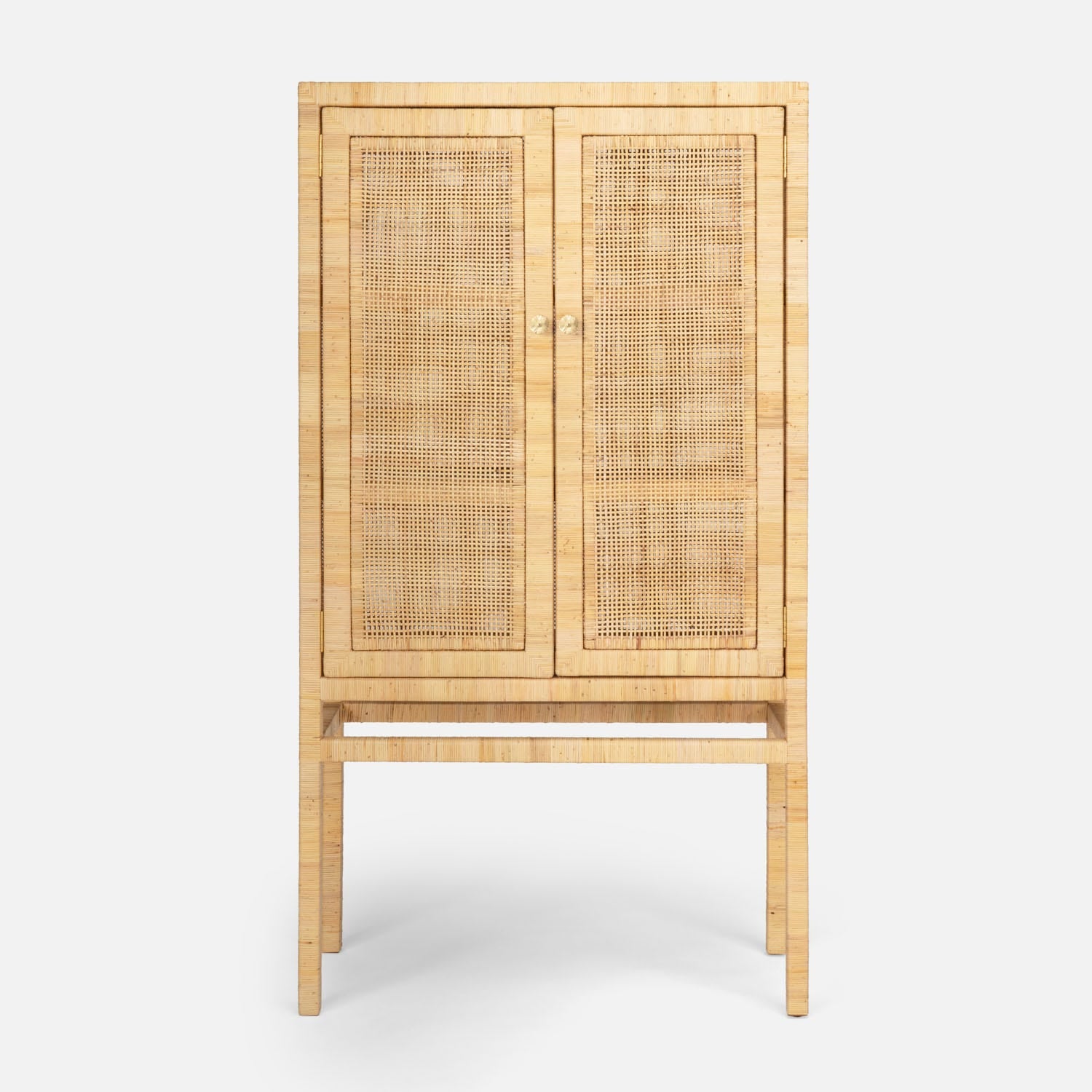 Elevate your space with the Made Goods Isla Standing Cabinet— A finely-crafted piece that marries the rustic charm of rattan with impeccable tailoring.