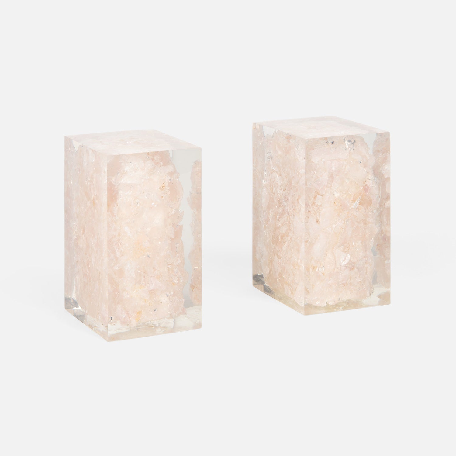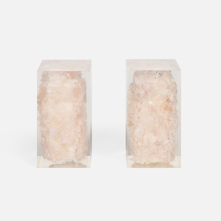 💡 Design and Material: Epitomize refined elegance through a harmonious blend of natural materials and contemporary design. Crafted from blocks of either jade or pale pink quartz, each piece is meticulously encased in transparent resin, allowing the inherent beauty of the stone to shine through. The result is a captivating visual contrast that adds sophistication to any space. Each set includes two identical pieces, ensuring symmetry and balance in your space.