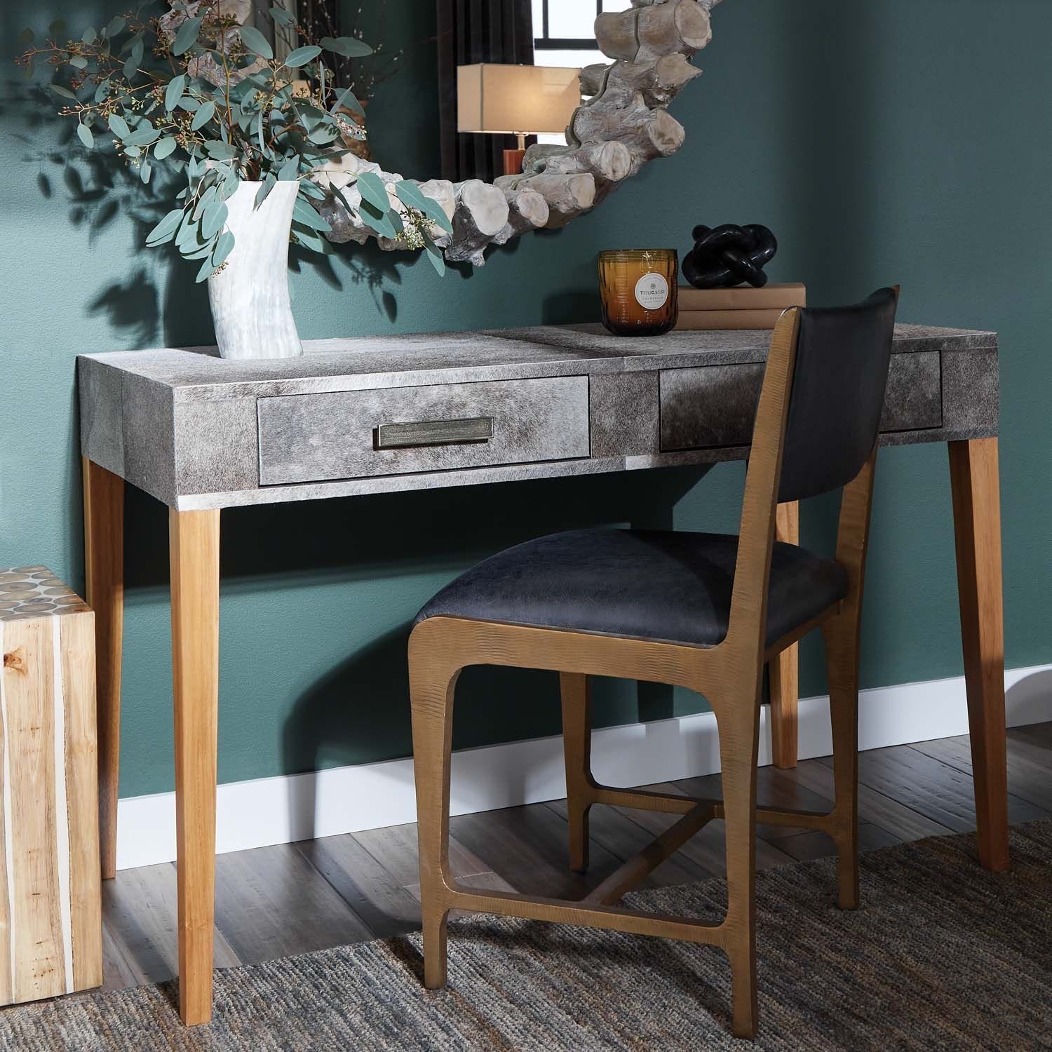 Made Goods Keaton Desk Genuine Grey Hair on Hide 2 Drawer Desk