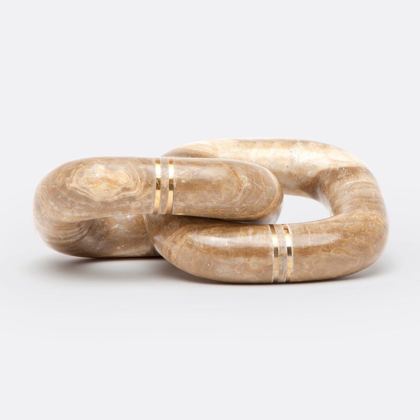 Elevate Your Space with Timeless Elegance with Made Goods Kelton Tabletops - Elegant Marble Chain Sculptures with Brass Inlay.
