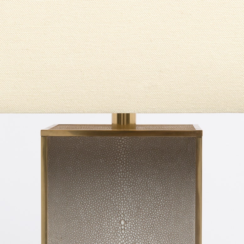 Brass Accents: Brass borders elevate the lamp's aesthetic by adding a touch of glamour and sophistication. The combination of brass and faux shagreen creates a visually striking contrast.
