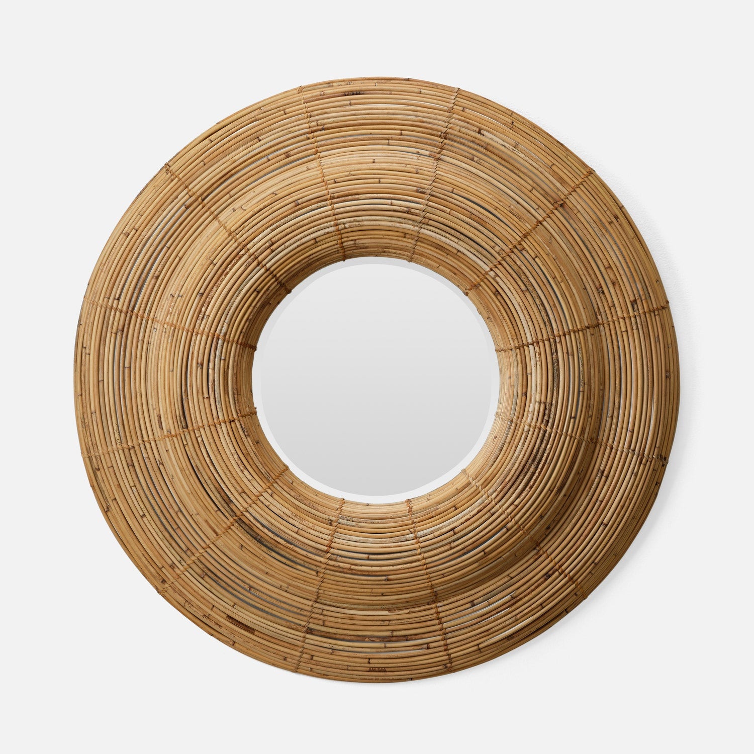 ๐ด Description: Bring the beauty of the tropics into your space with the Lenni Round Mirror from Made Goods. This mirror features a fresh and organic style created by weaving natural rattan, sourced from a climbing palm tree commonly found in Southeast Asia. The Lenni Mirror showcases the uniqueness of each strand, with no two pieces exactly alike, resulting in delightful natural variations in every mirror.