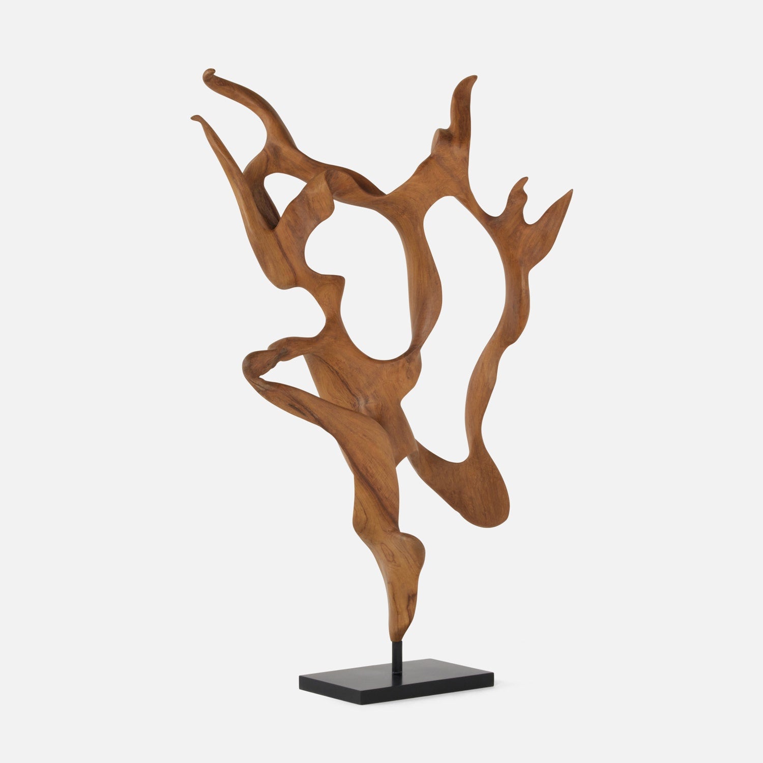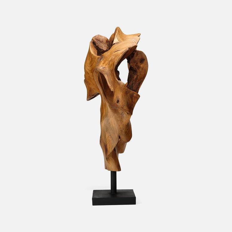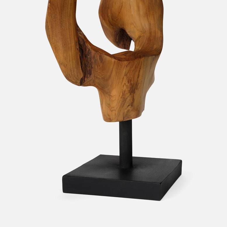 💡 Design and Material: Epitomizes the harmonious fusion of natural beauty and masterful craftsmanship. Crafted from single pieces of teak wood, each creation boasts its own unique form, captivating observers with its organic curves and graceful lines. Resting atop a square metal base, the piece appears to effortlessly defy gravity, adding an intriguing dimension to its already mesmerizing presence.