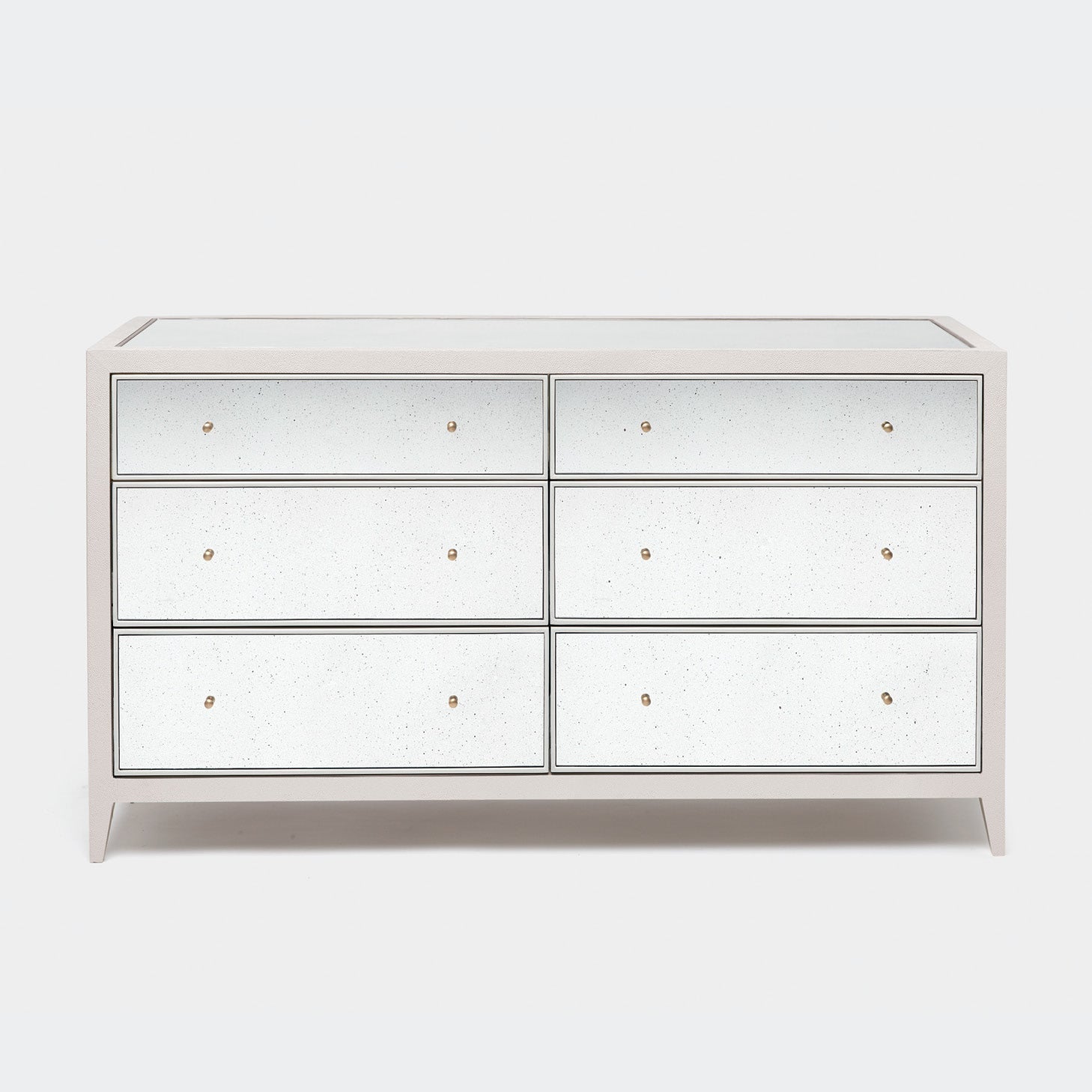 Enhance the elegance of your bedroom with the Made Goods Mia 60-inch Dresser - A striking piece from the Mia collection that showcases the beauty of refined material pairings.