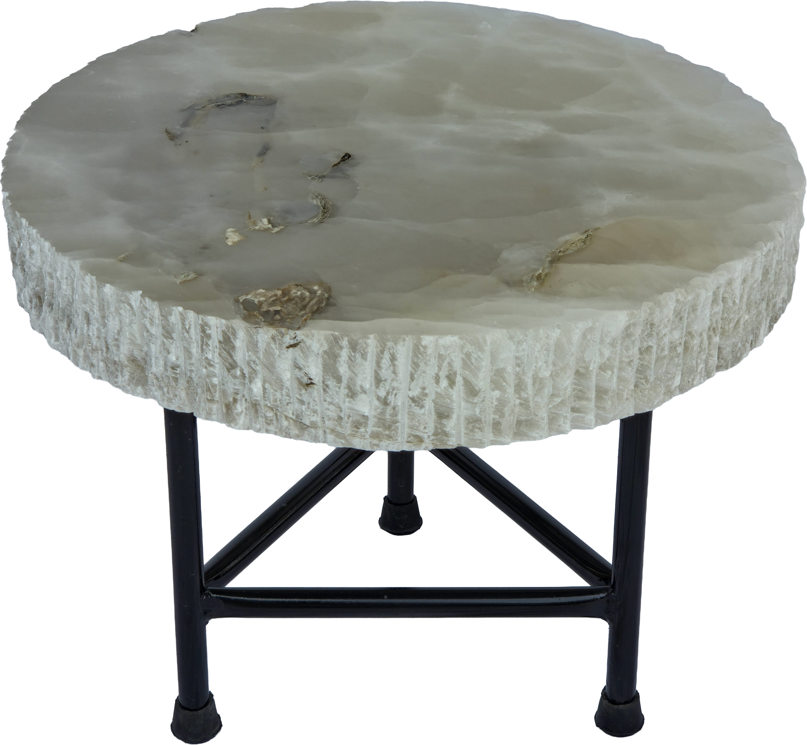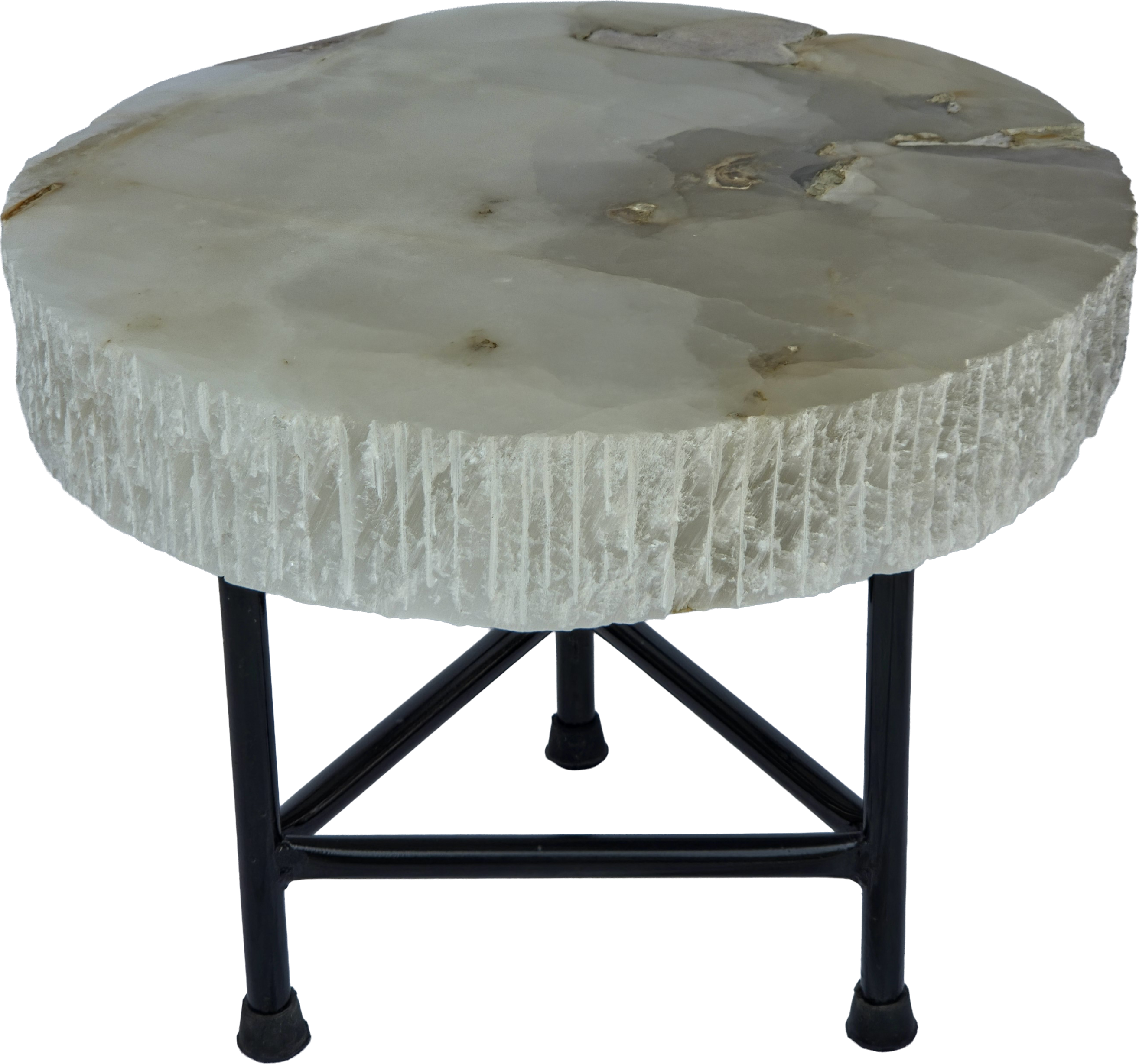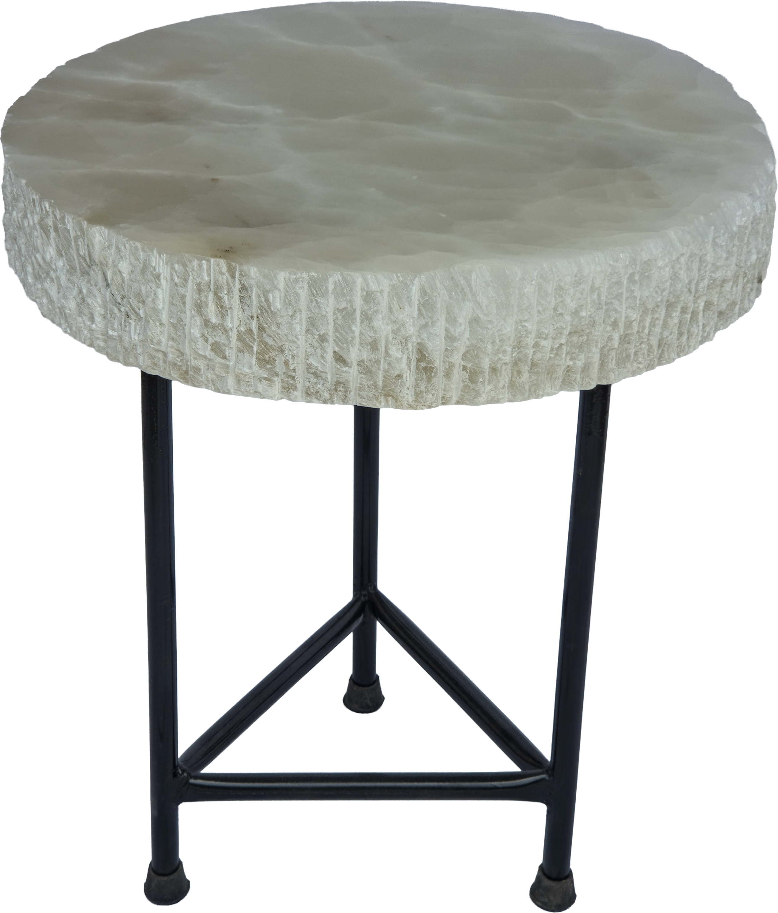 A striking blend of natural luxury and sculptural presence, our Thick Cut Selenite Side Table features a solid 16" round slab of hand-cut selenite. The stone’s translucent glow, crystalline veining, and textured raw edge create a breathtaking focal point in any room. Each slab is completely unique, with natural mineral variations that ensure no two pieces are alike.