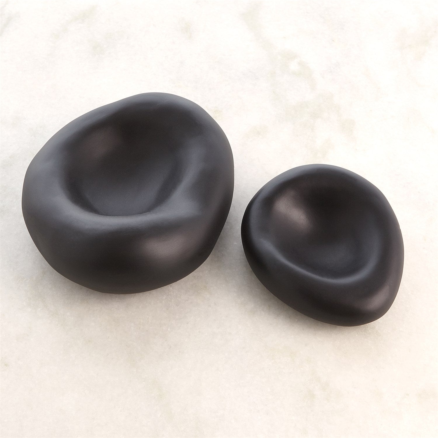Crafted in Italy, these organic shaped ceramic bowls have a matte black finish and available in two sizes.