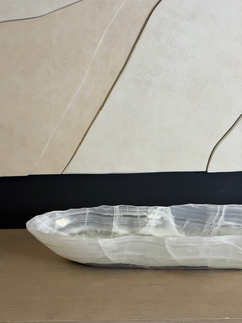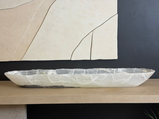 Cristalino Grey and White Onyx Canoe Bowl – 43"