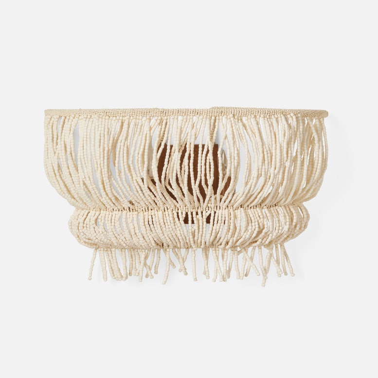- Coco Bead Draping: Hand-strung coco beads adorn the sconce, adding an organic and textural element that infuses the classic silhouette with modern flair. The intricate draping of the beads creates a sense of movement and visual interest.