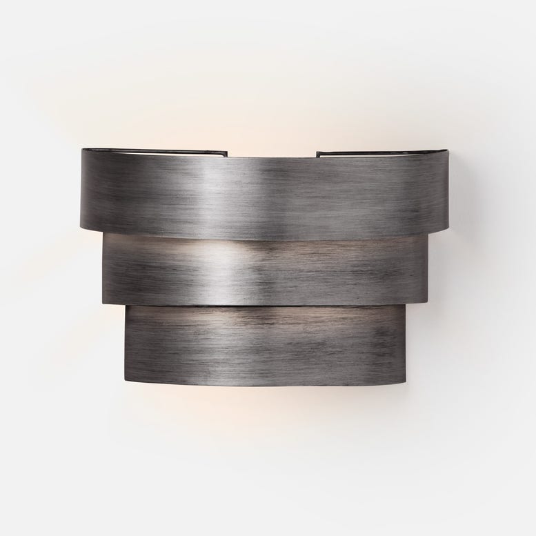 Art Deco-inspired Design: The sconce features a striking Art Deco design characterized by stacked descending semicircles, creating a bold and graphic silhouette that adds visual interest to any space.